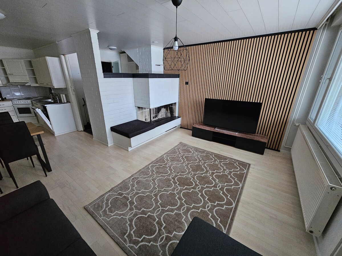 Ontspan en kom tot rust in deze vredige en gezellige ruimte. Nieuwe keuken met nieuwe apparaten, goed uitgeruste, smaakvol ingerichte studio. De badkamer is voorzien van een wasmachine en sauna. Twee bedden van 90 cm en 80 cm breed. Het appartement heeft een 43 inch tv en wifi. Het appartement bevindt zich op de 1e verdieping, geen lift. Gratis parkeerplaats op de parkeerplaats. Nabijgelegen joggingpaden en het winkelcentrum Mikkola ligt op ongeveer 1,5 km. Bushalte vlak naast het huis. Sleuteloverdracht vanuit ons huis (1 km van de accommodatie) uit de sleutelkluis.