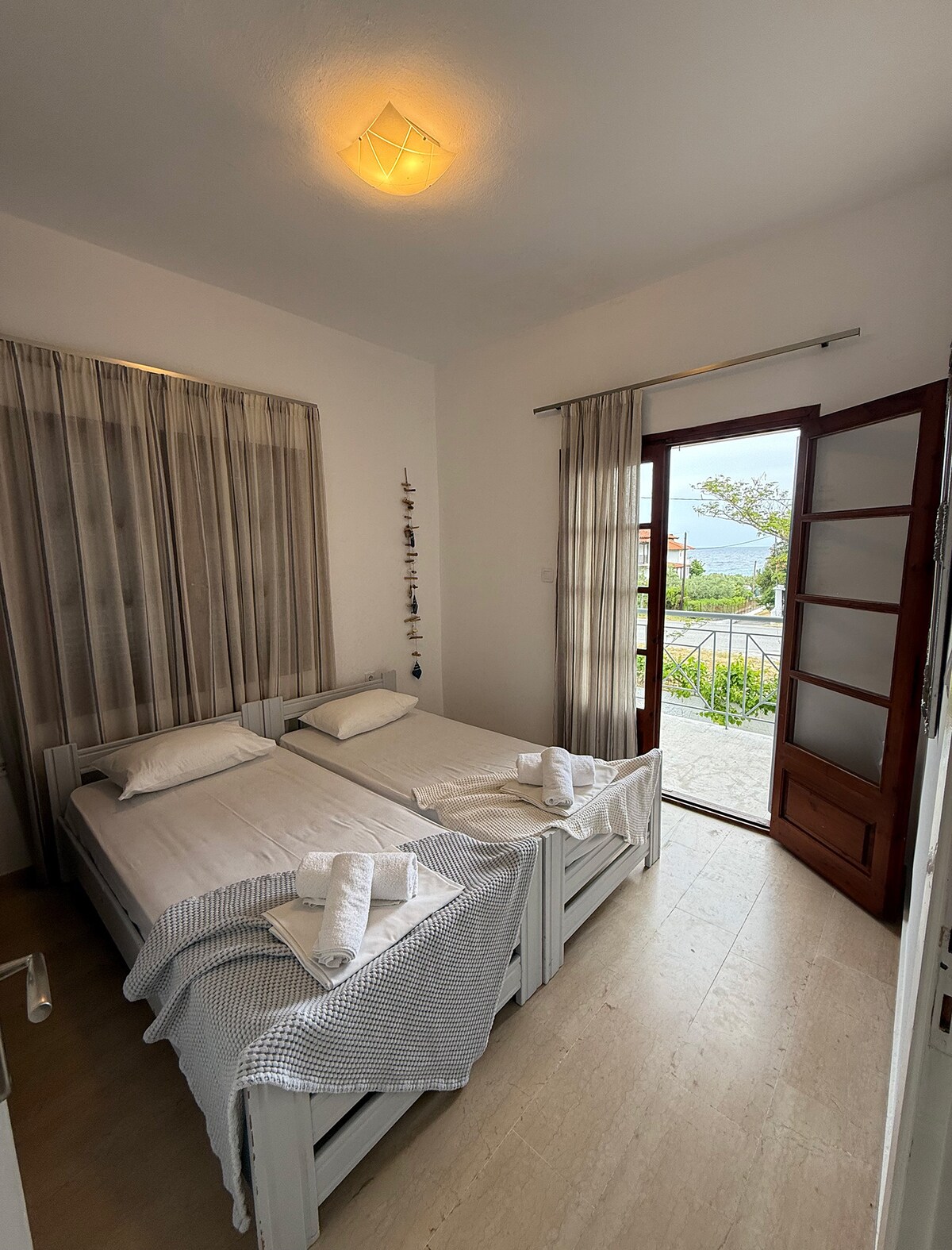 Geniet van je verblijf in een stijlvolle en comfortabele kamer op de tweede verdieping, met een geweldig uitzicht op de stad. Het Queen size bed en moderne gemakken zorgen voor een ontspannende ervaring. 100 meter van het centrum – Dicht bij restaurants, cafés en lokale bezienswaardigheden. Comfort en technologie – airconditioning, flatscreen-tv en gratis wifi. Ideale locatie – Verken Neos Marmaras met gemak!