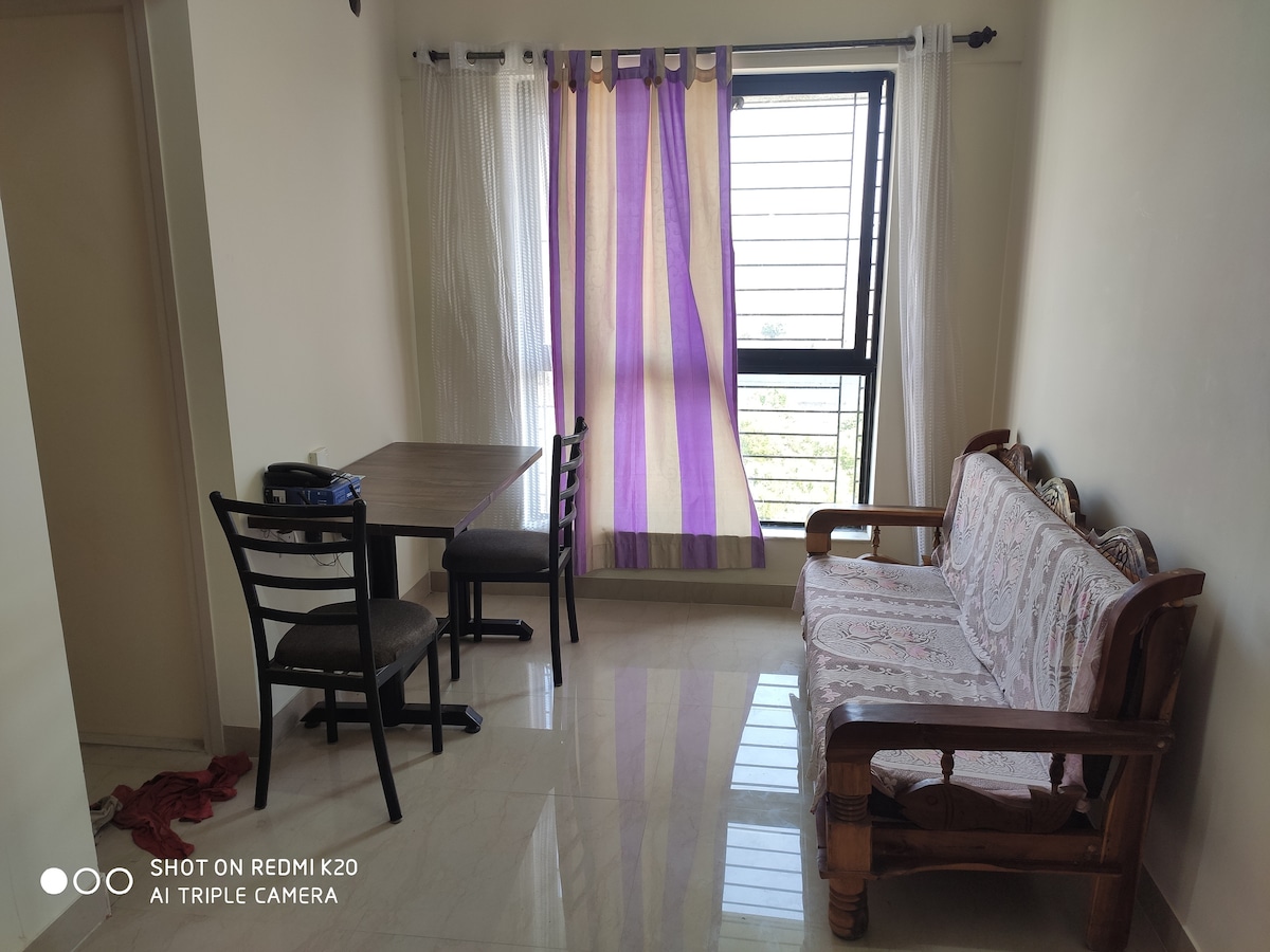 het is de perfecte keuze voor kort en lang verblijf om te ontspannen en je thuis te voelen. Deze accommodatie bevindt zich in een geïntegreerde township van Palava City met prachtige groene landschapsarchitectuur en luxe voorzieningen. Het is rolstoel- en huisdiervriendelijk. Het heeft alle items zoals airconditioning, koelkast, tv met amazon prime, snelle wifi-verbinding, automatische wasmachine, queensize bed, almira, veiligheidsgrill, waterfilter, geiser, slaapbank, ventilator, lichten, prestige (inductie, fornuis, rijstkoker), keukengerei, strijkijzerdoos.