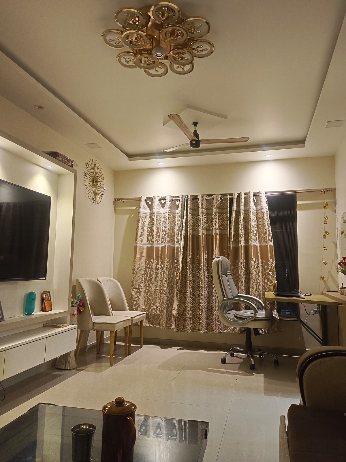 Ontspan en kom tot rust in deze vredige, stijlvolle ruimte. Het appartement is gezellig met hoteltype interieur. De woning is geschikt voor maximaal 2 gasten. Om veiligheidsredenen staan we geen kinderen toe (gelegen op de 23e verdieping zonder veiligheidsgrill). Gelegen in Majiwada, thane, hebben gemakkelijk toegang tot winkelcentrum Viviana. Heeft zwembad, fitnessruimte, enz. Niet voor ongehuwde stellen. Pls en een paar vragen voordat je reserveert. 1. Je (Gasten) volledige naam 2. Vanuit welke plaats 3. Doel van het bezoek 4. Je leeftijd. Deel je identiteitsbewijs