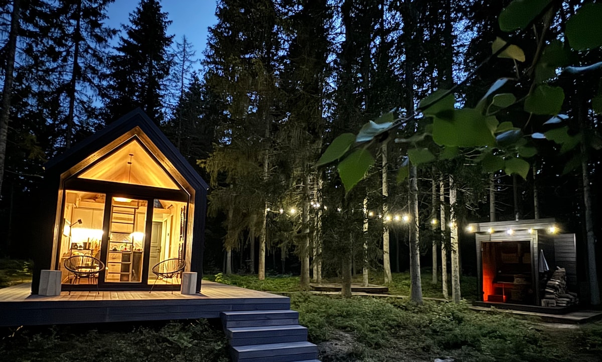 Dit compacte, moderne tinyhouse ligt aan de westkust van Estland. Bedoeld voor mensen die willen genieten van een natuurlijk toevluchtsoord zonder moderne gemakken op te geven. Het huis beschikt over een sauna, bubbelbad, een douche met verwarmde vloeren, toilet, een open woonkamer en een slaapgedeelte op de 'zolder'. Het huis is uitgerust met wifi, tv met Netflix-toegang, koffiezetapparaat enz. Verwarming/koeling wordt verzorgd door een geïntegreerde airconditioner De woning is het hele jaar door te genieten.