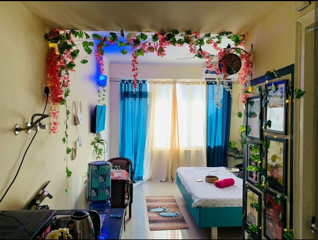 Escape the chaos of life at Supernova Spira Luxury Studio a luxurious, boho-inspired studio in Noida with rare Yamuna River and City views from your bed and balcony. Pet-friendly, Bali vibes, fully equipped kitchen, queen-size bed, fast WiFi & 5-star comforts. A heartfelt space dedicated to my late grandfather and angel pets, Bebo & Cherry. Dont forget to leave a review if you liked staying with us.