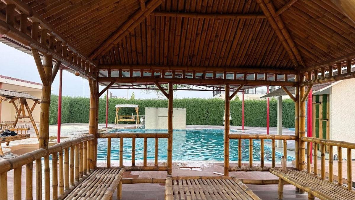Uniek modderhuis van Fun 'O' Peace in het hart van Noida. Ons thema 2 slaapkamers Mud House Airbnb biedt een serene uitje met een vleugje traditionele charme. Voorzieningen: -2 ruime ligbaden voor ontspanning - Gezellige woonkamer voor loungen en gezelligheid - Volledig uitgeruste keuken met: -RO-watersysteem -Magnetron -Inductiekookplaat -2 aangrenzende toiletten voor het gemak Ervaring: Laat je onderdompelen in de aardse sfeer van ons Mud House Perfect voor stellen, vrienden of familie die op zoek zijn naar een uniek verblijf