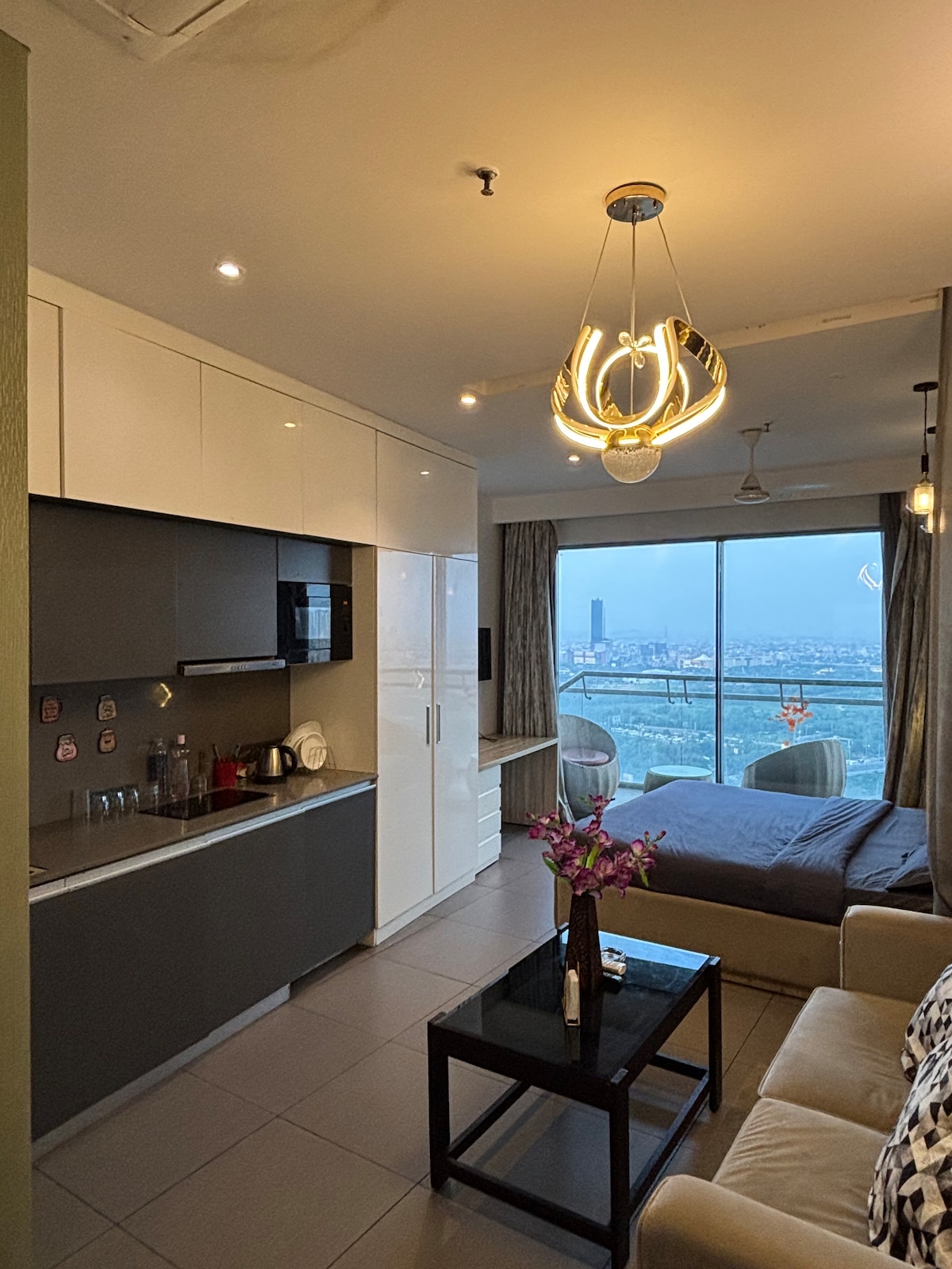 Maak kennis met ons prachtige luxe studio-appartement: Deze weelderige studio ligt in hartje hartje stad en beschikt over moderne elegantie en ongeëvenaard comfort. Het open conceptontwerp nodigt je uit in een ruim toevluchtsoord, badend in natuurlijk licht vanuit de grote ramen met een adembenemend uitzicht op de stad. Dit appartement bevindt zich op de 41e verdieping in een van de hoogste luchtschraper in Delhi - NCR. Het appartement heeft een uitzicht op de rivier vanaf het balkon!!