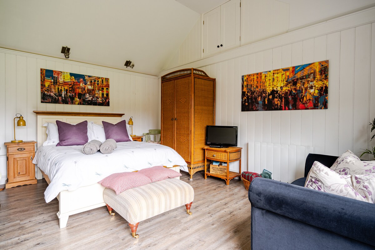 Ben je op zoek naar een romantische ontsnapping in het New Forest, op loopafstand van de pub en open bos, dan hoef je niet verder te zoeken. De Goat Shed ligt op het terrein van een indrukwekkend landhuis en is de stijlvol gerenoveerde begane grond van een 19e-eeuwse schuur, met een kingsize hemelbed, een klauwvoetbad en een houtkachel. Herten zwerven door de tuinen en onze houtkachel maakt nachten in perfect gezellig. Een geweldige plek om het bos te verkennen of gewoon comfortabel te ontspannen.