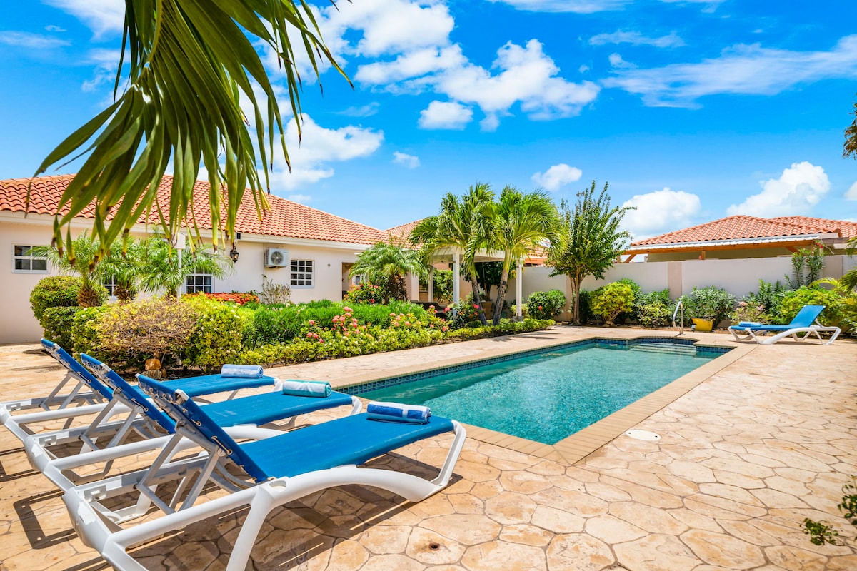 Bon bini bij Villa La Brisa Aruba! Dompel onder in ons privézwembad, geniet van de tropische bries op het terras en maak onvergetelijke herinneringen in ons prachtig gerestaureerde 'cunucu'-huis op Aruba's beste locatie. Ons gezinsvriendelijke huis heeft 3 slaapkamers, waaronder een master suite met kingsize bed en eigen badkamer, plus twee gastenkamers met queensize bedden. Op loopafstand van restaurants, nachtleven en strand. Ontdek onze luxe, gezinsvriendelijke oase in zonnig Aruba.