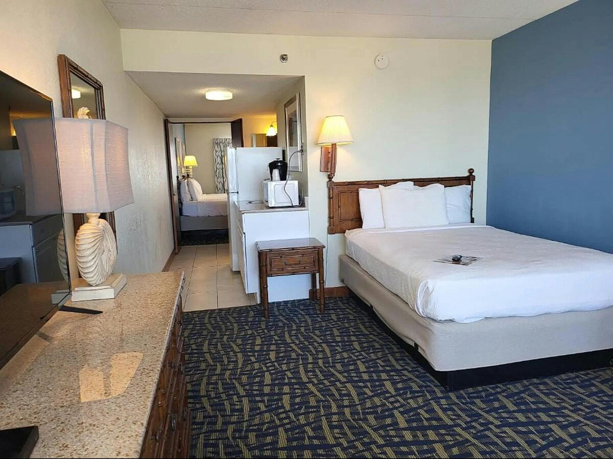 Gunstig gelegen timeshare op de hoofdstrook, aan de overkant van het strand, buitenactiviteiten en restaurants. De accommodatie beschikt over een grote slaapkamer, woonkamer, badkamer, volledig uitgeruste keuken, twee flatscreen-tv 's en een balkon met een schilderachtig uitzicht. OPMERKING: geen huisdieren toegestaan. Als je echter een geregistreerde service hebt met bewijs, mag je deze meenemen. Stuur ons een bericht om ons te laten weten dat je voorafgaand aan de reservering een geregistreerd diensthuisdier hebt.