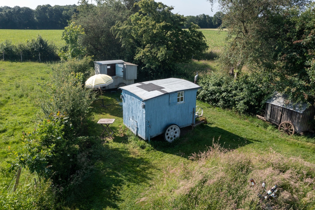 Gerestaureerde zigeunercaravan op ons terrein. De trailer is uitgerust met een bedruimte en een kitchenette met wastafel en koelkast, evenals elektriciteit. De trailer is niet uitgerust met een badkamer, maar je hebt een Scandinavisch bad om in alle rust te ontspannen. Ook: droog toilet, barbecue, fietsen en een klein buitenterras. Het ontbijt zit in het nachttarief, maar je kunt ook een maaltijdmand hebben om voor je aankomst te bestellen
