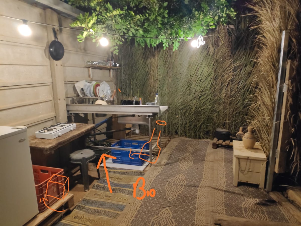Unieke dubbele glamping met een prachtig uitzicht op de woestijn en de stad Arad. In het complex is een speciale glamping tent geïsoleerd van warmte en bron. Een verwennerige airconditioning en een verwennerige binnenbadkamer en een enorm, schaduwrijk terrasbalkon. Buiten is er een zithoek, een plek om een vuur aan te steken, een buitenkeuken en een verwend glas in het warme seizoen (maart-oktober) Vanaf het erf loop je naar wandelpaden rond Arad, beken en het uitzicht op de Dode Zee om de hoek. Alles wat we deden, van de planning, tot de bouw, en tot het ontwerp en alles werd gedaan met veel aandacht en liefde. Maaltijden zijn tegen betaling te bestellen en er zijn verschillende eetgelegenheden in Arad en omgeving.