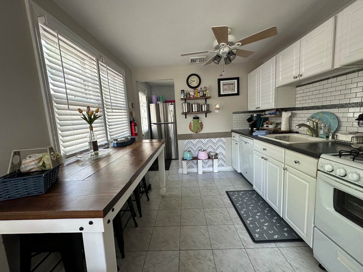 Ontspan en ontspan in dit rustige, stijlvolle en met technologie ingerichte huisje. Geniet van de volledig omheinde tuin en de nabijheid van de beste brouwerijen en wijnhuizen van Cape May! Je honden zullen genieten van de tuin, het gevulde speelgoed en de aangewezen potvuller voor hun waterbak. De kinderen die zullen genieten van de vuurplaats, de nabijheid van de baai en op maat gemaakte stapelbedden (met een tv in elk stapelbed). Niet je gemiddelde strandhuisje - gloednieuwe tv 's / apparaten. Sonos audio en aanpasbare Philips Hue-verlichting.