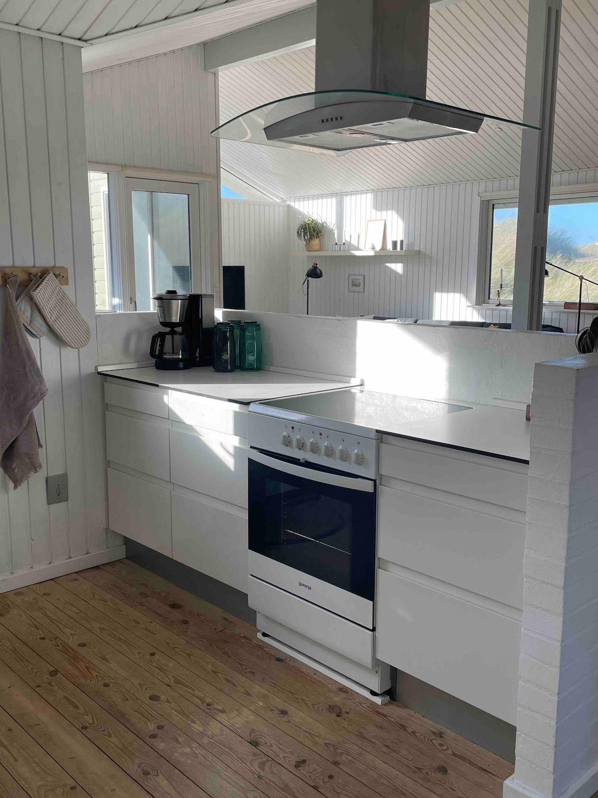 Charmant retro huisje met adembenemend uitzicht op zee. Geniet van de zonsondergang over de duinen vanuit de open keuken. Grote ramen zorgen voor licht, zichtbaarheid. Of ontspan op een koude winterdag voor de houtkachel en kijk uit over de bruisende Noordzee. Woonkamer met gezellige slaapnissen, incl. uitzicht op de oceaan. 2 slaapkamers, badkamer en loft met ruimte voor 2 extra personen. Let op: de prijs is excl. schoonmaak: DKK 700 voor een verblijf van meer dan 3 dagen, anders DKK 500 voor een verblijf van minder dan 3 dagen. Betaald bij vertrek.