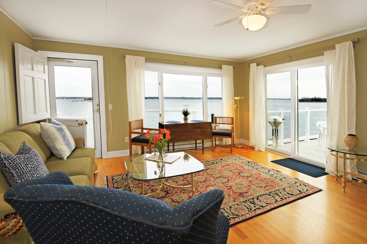 Geniet van een weids uitzicht op Narragansett Bay, waaronder Jamestown, Fox Island en de bruggen naar Jamestown en Newport. Word wakker met spectaculaire zonsopgangen en de geluiden van het water dat aan de kust kabbelt. Dit open woonappartement met twee slaapkamers ligt op twee minuten van Wickford, op vijftien minuten van Jamestown, Newport en op twintig minuten van URI. De woonkamer biedt toegang tot een eigen terras om te grillen, te ontspannen of naar de bootactiviteit te kijken terwijl de maan boven de baai opkomt. Op het terrein kajakken zwemmen en andere wateractiviteiten.
