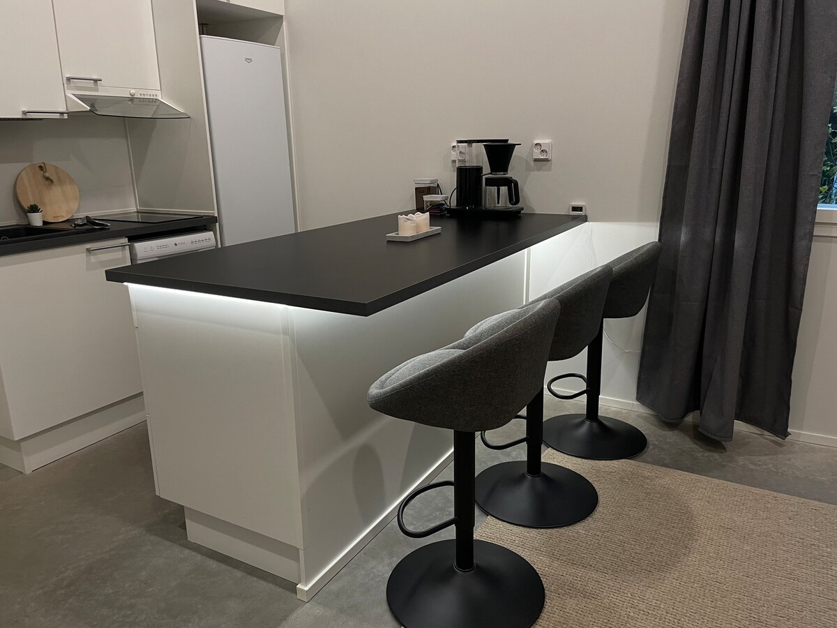 Deze uitstekend beoordeelde accommodatie wordt aangeboden door een Superhost en biedt een betrouwbaar, hoogwaardig en professioneel schoongemaakt verblijf. Een prachtig appartement van 47 m² met één slaapkamer in het centrum van Oulu, dicht bij uitstekende vervoersverbindingen en alle voorzieningen. Ondanks de centrale ligging is het appartement erg rustig. Het beschikt ook over airconditioning voor warme zomerdagen. Beddengoed en handdoeken zijn inbegrepen. Een parkeerplaats in een verwarmde garage is inbegrepen, en opladen voor elektrische auto's is mogelijk voor € 0,20/kWh.