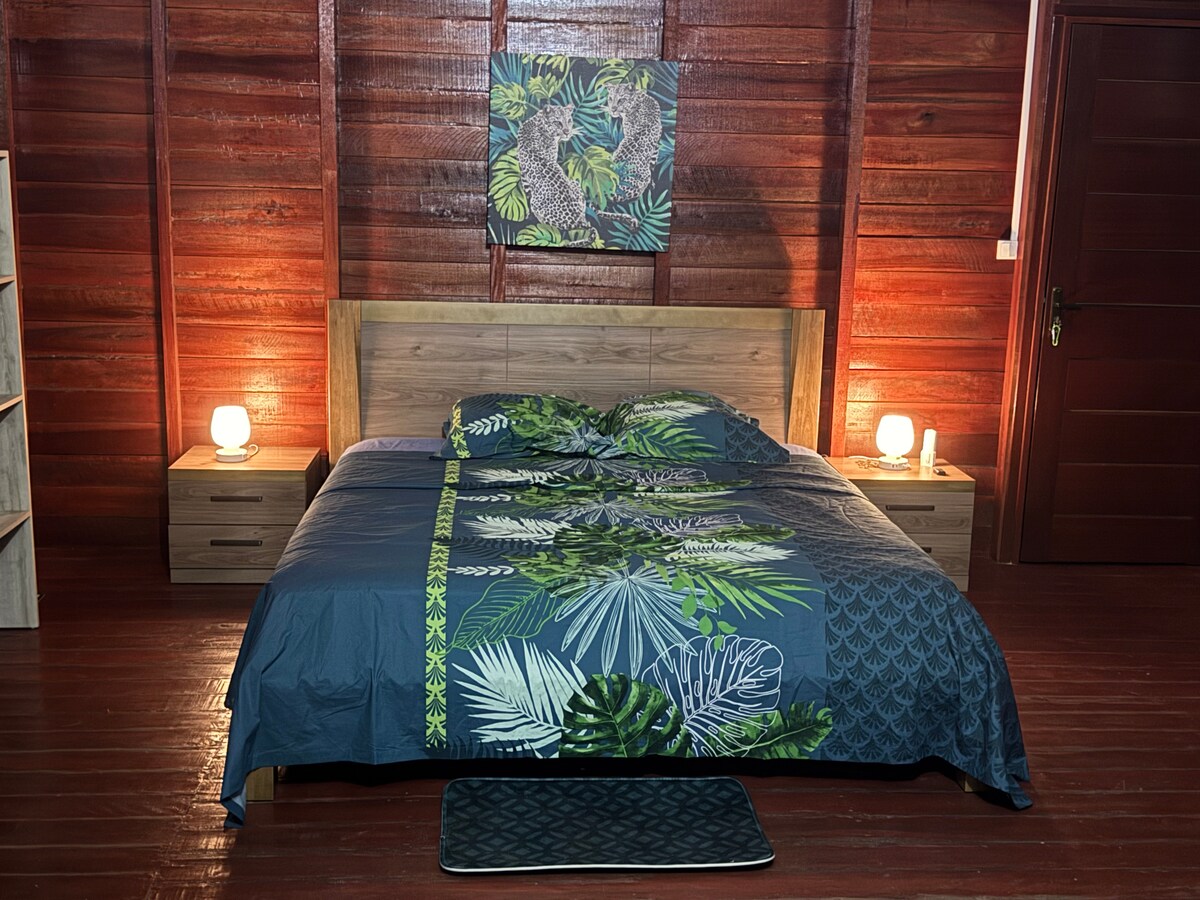 Ons nieuwe mooie gezellige huisje is een zelfstandig huisje. Twee kamers met elk twee zeer comfortabele bedden, twee complete badkamers. Een woonkamer met kabel-tv en een moderne eetkamer . Volledige keuken. Omgeven door de natuur, comfort en goede smaak, zult u genieten van uw verblijf. Als u met een grote familie reist, vraag dan naar de VERBINDING met Blue Bungalow, het heeft een kamer, drie bedden, complete badkamer, tv en een woonkamer. Zeer goed internetsignaal.
