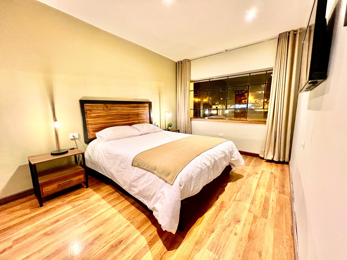 Ontspan in kamer 701, met een eenpersoonsbed, een suite met een eigen jacuzzi en een prachtig uitzicht op de Quillabamba-vallei. Geniet van een rustige sfeer, vol daglicht en comfort. Ideaal voor stellen of reizigers die willen rusten, in contact willen komen met de natuur en een unieke ervaring willen beleven op het terras op de 7e verdieping.