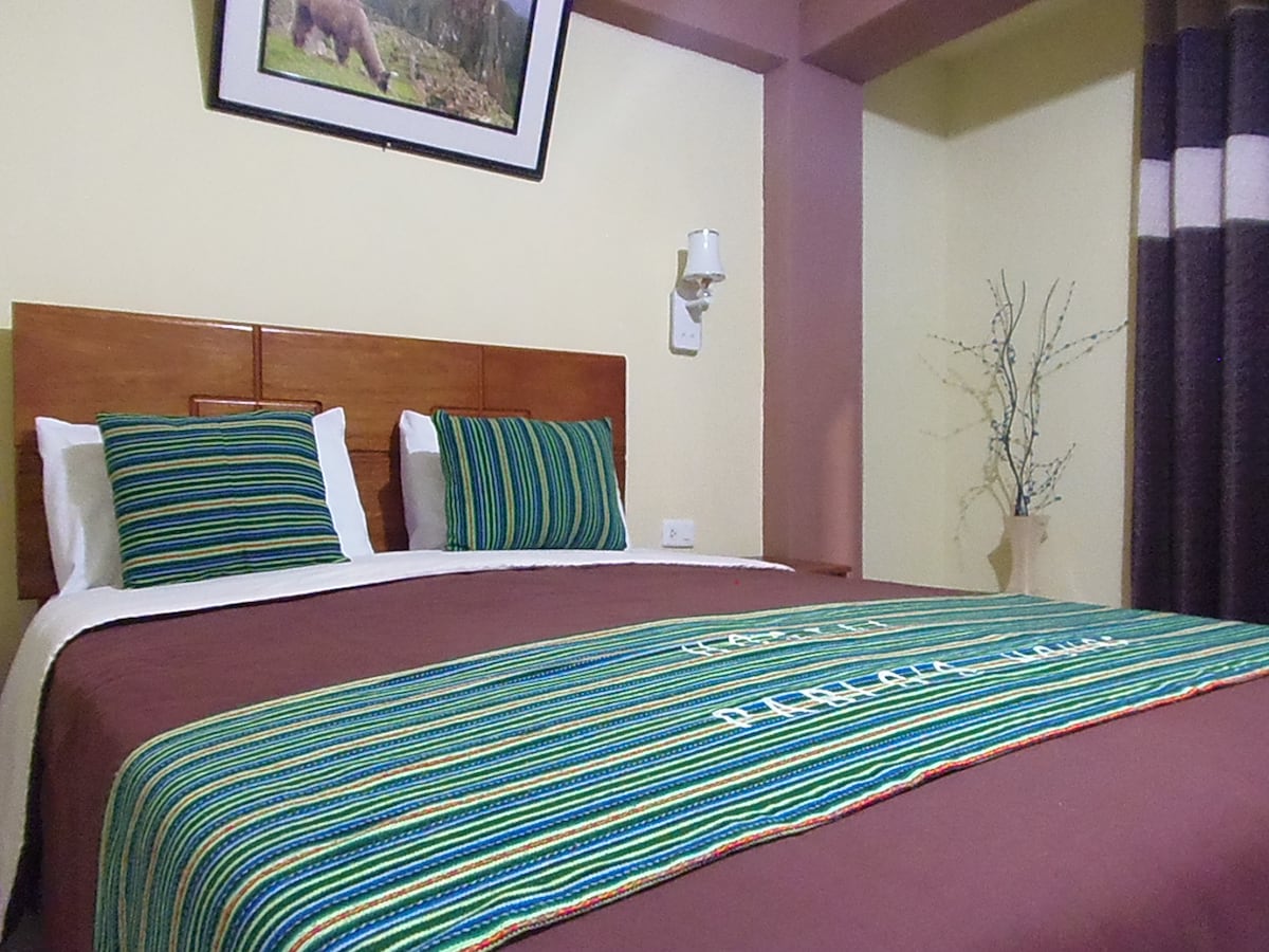 De kamer HEEFT EEN TWEEPERSOONSBED en een eenpersoonsbed, hygiënische voorzieningen in de kamer. Persoonlijke schoonmaakbenodigdheden: 3 handdoeken, een rol toiletpapier, twee zepen, twee shampoo pads. (afhankelijk van het aantal gasten) Het heeft een kaarslicht, een wandhanger, een tafel (70 cm x 70 cm) MET TWEE stoelen, een deurmat. Het heeft een vaas met een kopie van de lokale bloemen, twee schilderijen gemaakt door Cusqueño kunstenaars.
