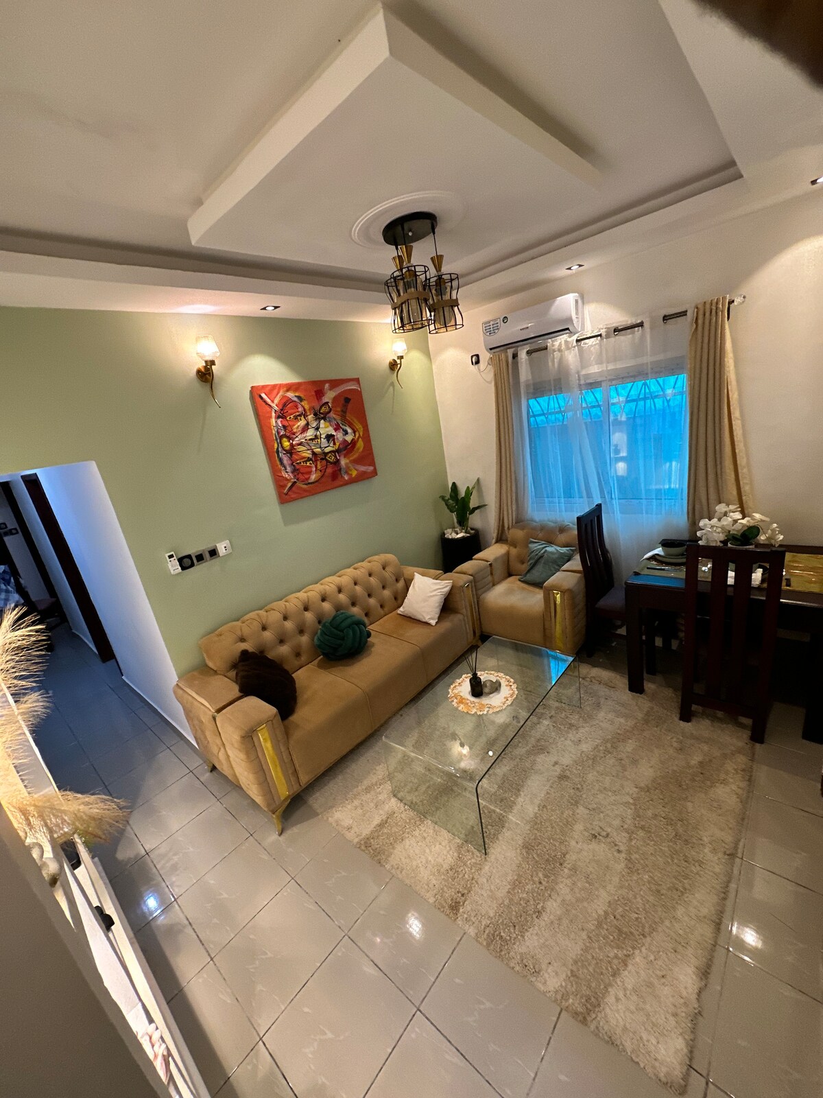 Simplifiez-vous la vie dans ce logement paisible qui associe confort moderne avec mobilier et décoration artisanale. Situé en plein centre-ville, il se compose d'une chambre, 1 salon avec espace sofa et espace table à manger, cuisine, douche, climatisation et le parking sécurisé dans une barrière.