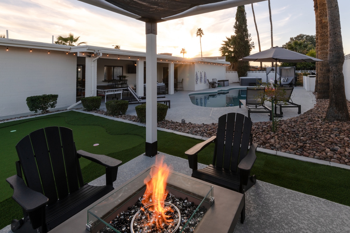 •Top 1% of Homes according to Airbnb •Two miles from Old Town Scottsdale •Private Heated (or Chilled) Pool & Spa •Fire table, Putting Green, Outdoor Bar & Grill, Pac-Man & More •Fully equipped Kitchen •Close to many Golf Courses •Dual Masters •Beautiful outdoor area with seating for 10, cooler, outdoor TV, Putters & balls, pool toys, Ledge Loungers! •Washer/Dryer •"An incredible house with luxurious amenities and close to Old Town and the airport! SIX star Review" Heart us ♥ for wishlist!