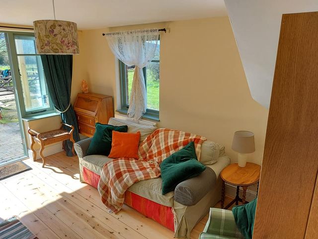 The Byre - een monumentaal zelfstandig huisje op een werkend klein bedrijf. Een omgebouwde varkensstal met een open keuken-lounge ingericht met een comfortabele bank. Een ruime keuken uitgerust met kookplaat, combi-oven-magnetron en koelkast incl. keukengerei, servies, potten en pannen. De badkamer heeft een grote inloopdouche en wasmachine. De slaapkamer heeft een kingsize bed en 2 uittrekbare futonstoelen, om maximaal vier personen te slapen. Buiten is er een speciale bbq/tuin.