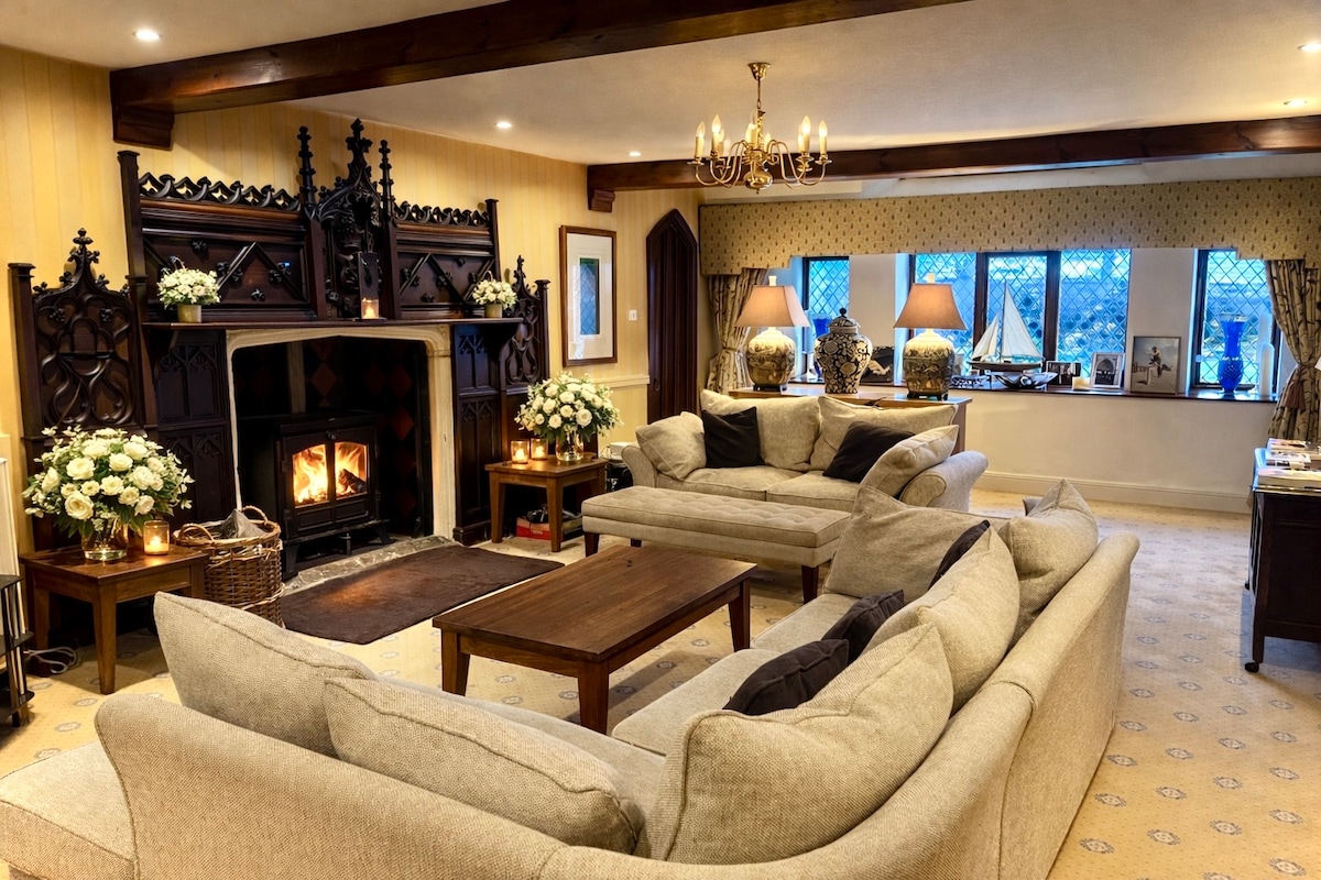 Stap in de geschiedenis bij The Cloisters, Banwell Abbey - een betoverende middeleeuwse retraite in een bisschoppenresidentie uit 1456. Slaapplaats voor maximaal 8 gasten in twee kingsize en twee slaapkamers met tweepersoonsbed. Deze unieke woning combineert een eeuwenoud karakter met modern comfort. Geniet van een lichte orangerie, twee keukens, elegante slaapkamers, een geheime trap, privétuin en fitnessruimte. Perfect voor familie-uitjes en speciale vieringen, omgeven door het rustige platteland van Somerset. Twee slaapkamers bevinden zich op de eerste verdieping.
