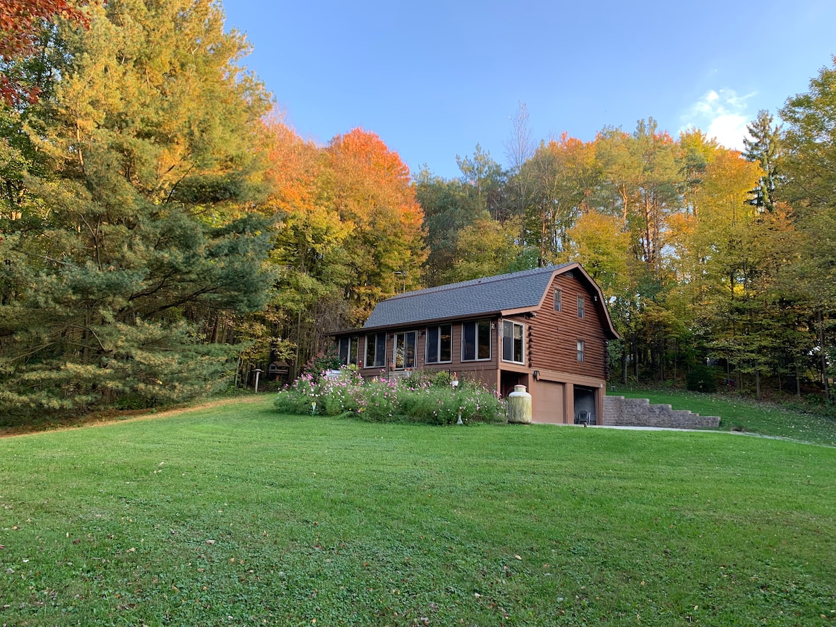 Onze gezellige hut is gelegen in de buurt van Lake Rockwell met veel bomen en buitenruimte. De binnenkant van onze woning heeft 4 dakramen die veel natuurlijke zon verwelkomen. Er is een sauna in de kelder en een prachtig park genaamd Towner 's Woods op slechts anderhalve kilometer. We zijn ook 10 minuten van Kent State University en het centrum van Kent. We raden je aan een auto met vierwielaandrijving of vierwielaandrijving te hebben voor de winter. Als er veel sneeuw ligt en dat doe je niet, dan kun je vast komen te zitten!