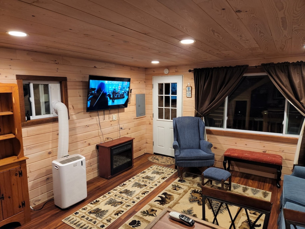 Privacy en comfort zijn van jou wanneer je in deze ruime vierseizoenhut verblijft met 3 slaapkamers, 2 badkamers met eigen vijvers. De hut is voorzien van beddengoed, handdoeken, goed uitgeruste keuken, airconditioning, wifi, afgeschermd in veranda, gezellige rotshaard, picknicktafel, vuurplaats, grill en een prachtig landschap. Het tarief is inclusief maximaal 2 gasten, elke extra gast kost $ 35,00/nacht. Huisdieren zijn welkom tegen een toeslag van $ 20 per huisdier per dag (maximaal 2) en kampvuurhout is beschikbaar voor $ 5 per bundel.