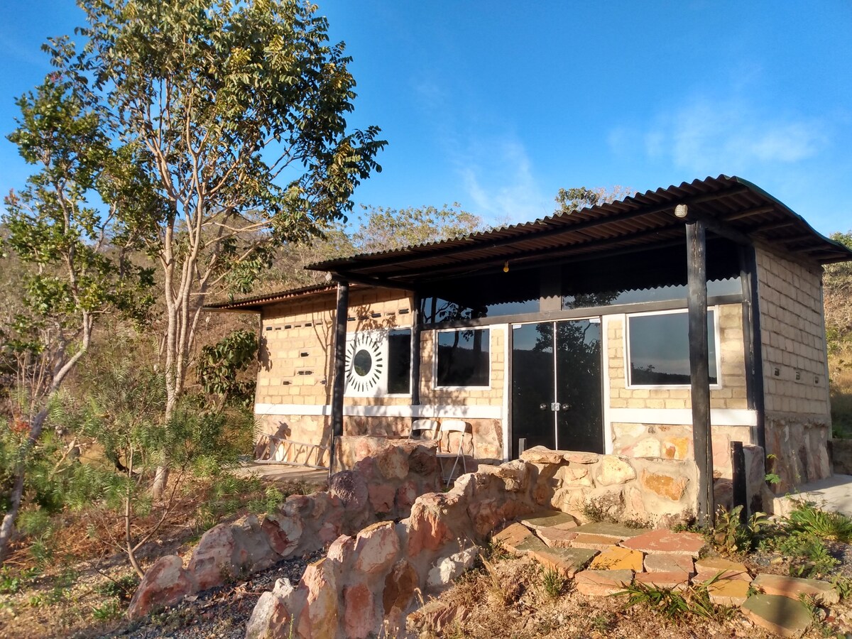 Milieuvriendelijke verhuur in São João d 'Aliança-GO, Chapada dos Veadeiros portaal. De Suite van de Serra is een gezellige accommodatie, gebouwd met natuurlijke technieken (stenen, adobe en gerecyclede materialen). Het uitzicht vanaf het balkon is spectaculair!!! Onze bezoekers hebben de mogelijkheid om duurzame praktijken te ervaren en prachtige watervallen in de regio te leren kennen... Aankomst: flexibel uitchecken: 14.00 uur Capaciteit: tot 8 personen (2 badkamers, 2 tweepersoonsbedden, 1 eenpersoonsbed, 3 extra matrassen)