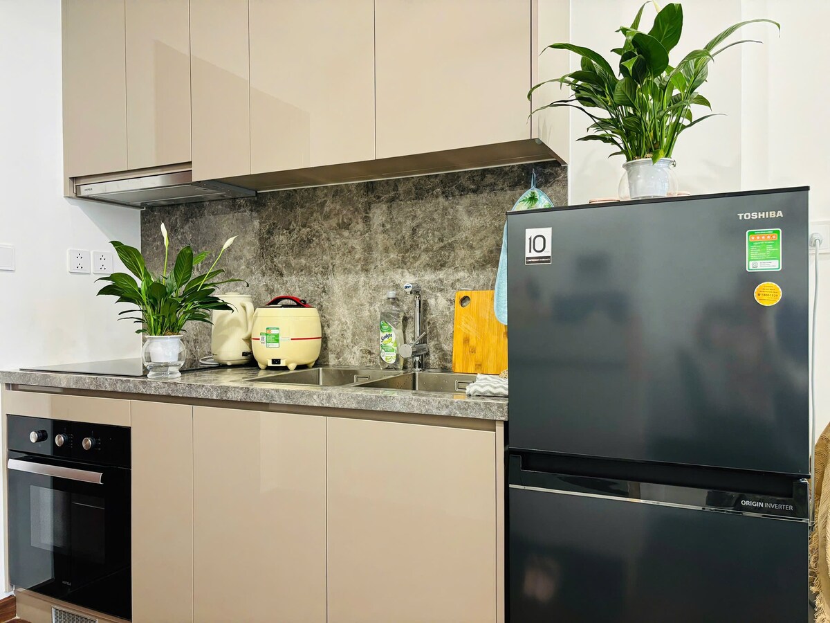Nieuwe 100%-VIP-kamer van 40 m² bij Ladino Studio – 6th Element, Tay Ho Tay. + Auto's geparkeerd voor de deur, 2 grote balkons met goede verlichting. + Er is een kinderspeelruimte – een ontspanningsruimte voor volwassenen – een koele groene bloementuin. + Volledig ingericht: zacht bed, smart-tv, airconditioning, koelkast, keuken, bureau, eigen badkamer. Gratis wasmachine – droger op de 5e verdieping. + Handige locatie: 10 minuten naar West Lake, 15 minuten naar Uncle Ho's Mausoleum, 30 minuten naar de luchthaven; een paar minuten naar Ba Dinh, Cau Giay, Nam/Bac Tu Liem. + Vingerafdrukslot, lift, café – restaurant – Winmart 20m.