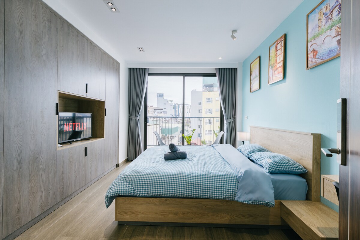 Moderne studio in de buurt van WestLake & Lotte Mall | Balkon