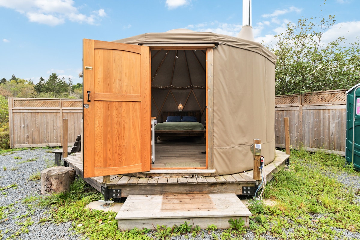 Maak het gezellig en ga zitten in deze rustieke ruimte. De Yurt is technisch off-grid, maar we hebben wel wifi ! De yurt wordt verwarmd door een houtkachel waar je kunt genieten van de sfeer door de glazen deur. De kachel houdt de joert erg lekker warm, zelfs op koude winteravonden. Een kitchenette biedt de basisvoorzieningen die nodig zijn. Er is een comfortabel queensize bed en zelfs een hangmat om in te loungen! Ontspan in deze glamping-ervaring terwijl je dicht bij alles wat lunenburg te bieden heeft.