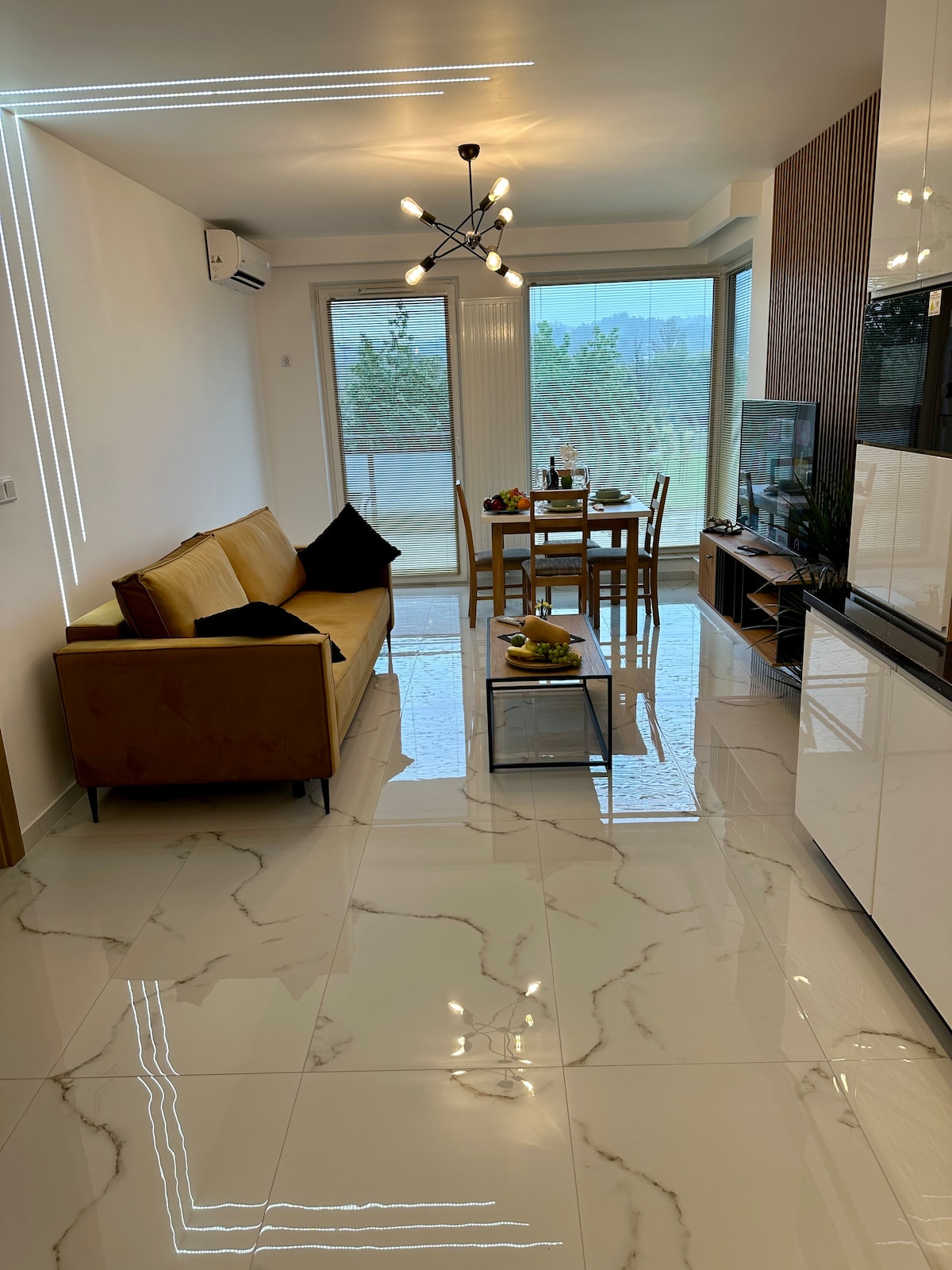 Een modern, stijlvol appartement met gratis parkeerruimte in een ondergrondse garage. Goed uitgeruste keuken. Badkamer voorzien van toilet, douche, wasmachine. Woonkamer met zithoek, TV (Netflix, Gracht+) airconditioning. Uitgang naar het balkon vanuit de woonkamer en slaapkamer. Beddengoed, handdoeken, thee- en koffiefaciliteiten zijn aanwezig. Het gebouw is perfect gelegen - naar de Markt 3,3 km, naar Krynica Zdrój 31 km - het gebouw is gelegen aan de afrit naar Krynica. Dichtbij supermarkten, restaurant.