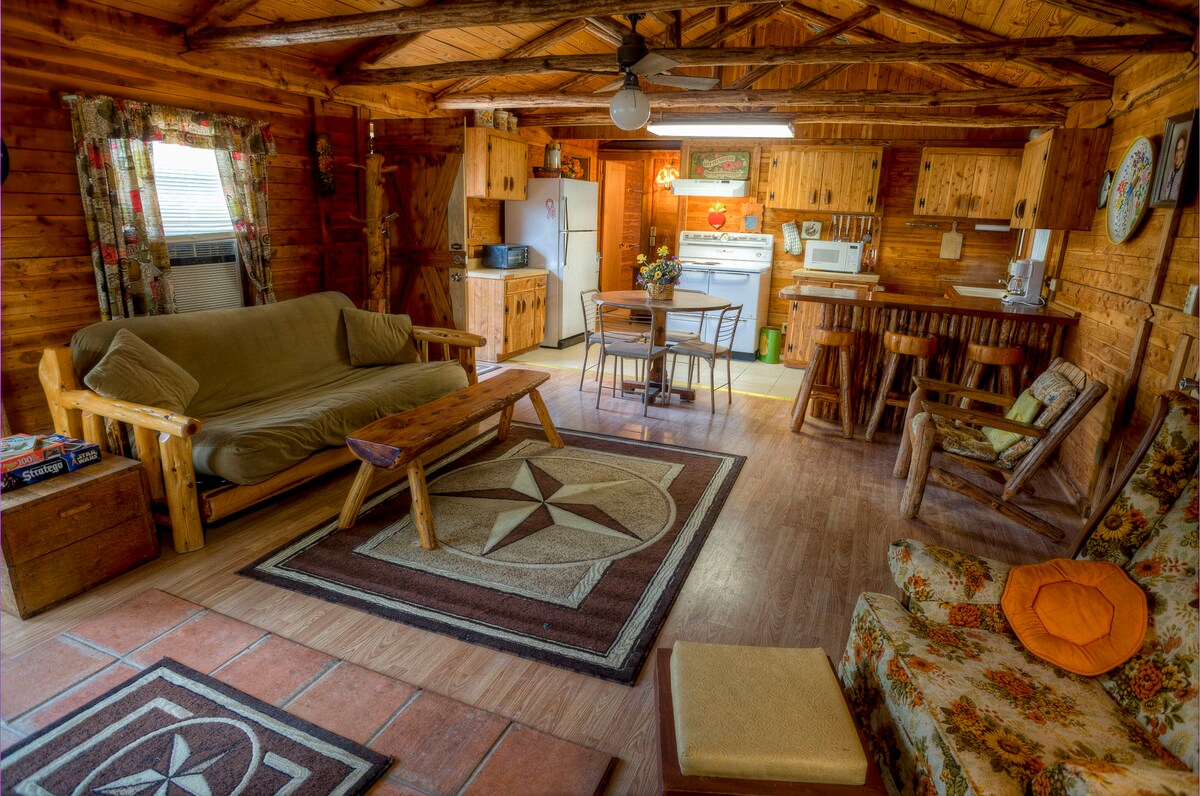 Ga terug naar de basis in een rustige gezellige hut bij FoxFire in Vanderpool. Geniet van het opnieuw verbinden met de natuur met een wandeling of zwem in de Sabinal-rivier, wandel in Lost Maples Park, vogels kijken of's nachts genieten van de sterren en een kampvuur! Volledig ingerichte comfortabele hutten met 2 slaapkamers en 1 badkamer. Geen tv's of magnetron, maar wifi, kampvuurring, barbecue, volledige keuken/bad met picknickplaats buiten. Het terrein heeft ook een speeltuin, basketbaldoel, volleybalnet en toegang tot de rivier. Gezins- en huisdier-vriendelijk!
