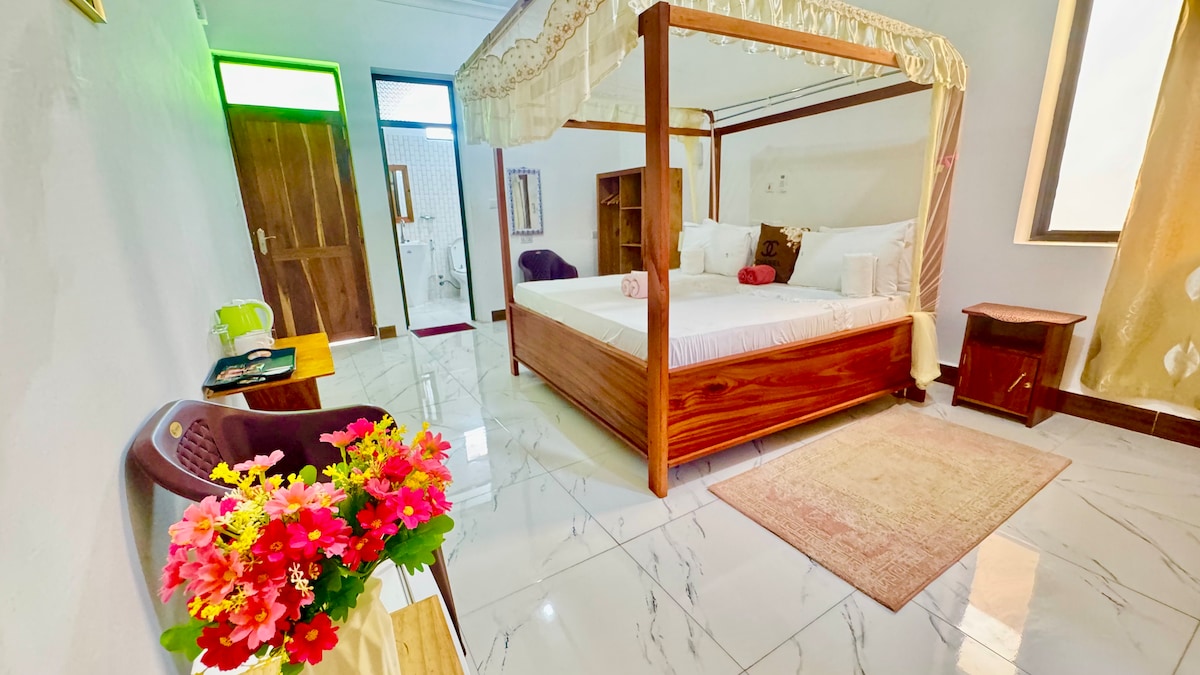 The suite is a part of 8 rooms boutique hotel in Nungwi. Nestled in a tropical paradise, our stylish accommodations are a perfect blend of comfort and charm. We invite you to slow down and experience Zanzibar ‘Hakuna Matata’ and ‘Pole pole’ life. Unwind by our beautiful swimming pool and enjoy our lush tropical garden. At our hotel, we treat everyone like family, ensuring that all guests enjoy their stay to the fullest. We're located 650m from the beach (~7 mins walk).