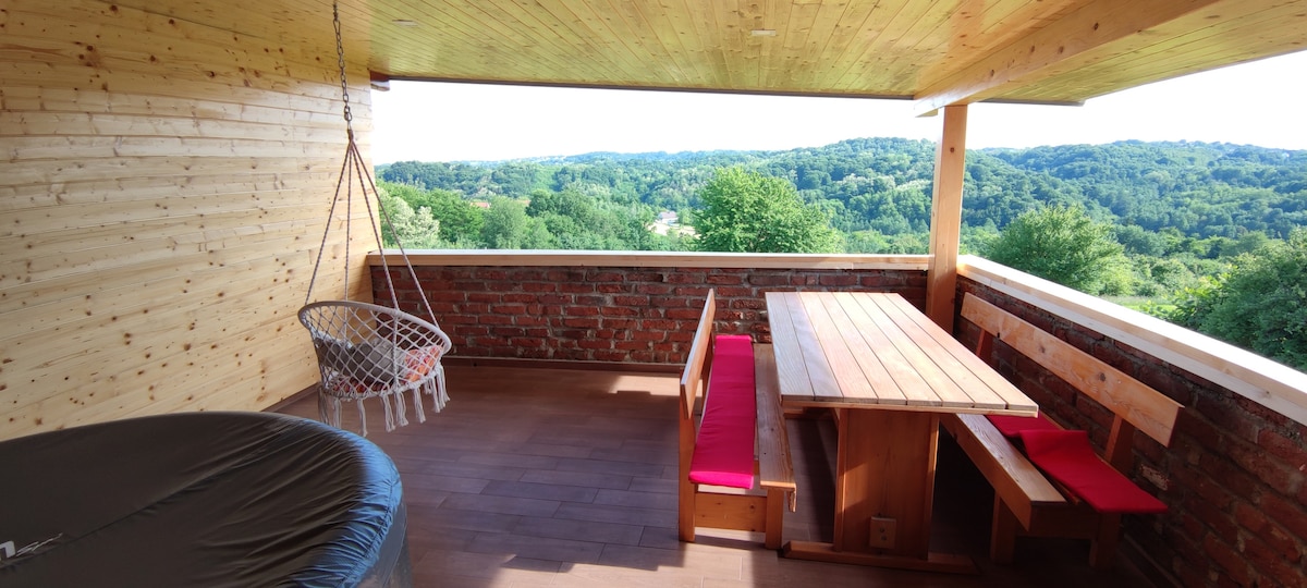 Een privéhuis met een groot en aangelegd landgoed is een geweldige keuze voor een perfect uitje en regeneratie, of om actief tijd door te brengen in de natuur. Het is omgeven door veel groene en verzorgde oppervlakken, een bos en een walnootplantage van precies 100 bomen. Het huis is nieuw ingericht en geschikt voor 4-6 personen. Er is een balkon met een terras , een overdekte barbecue of een eettafel buiten en een wijnkelder.