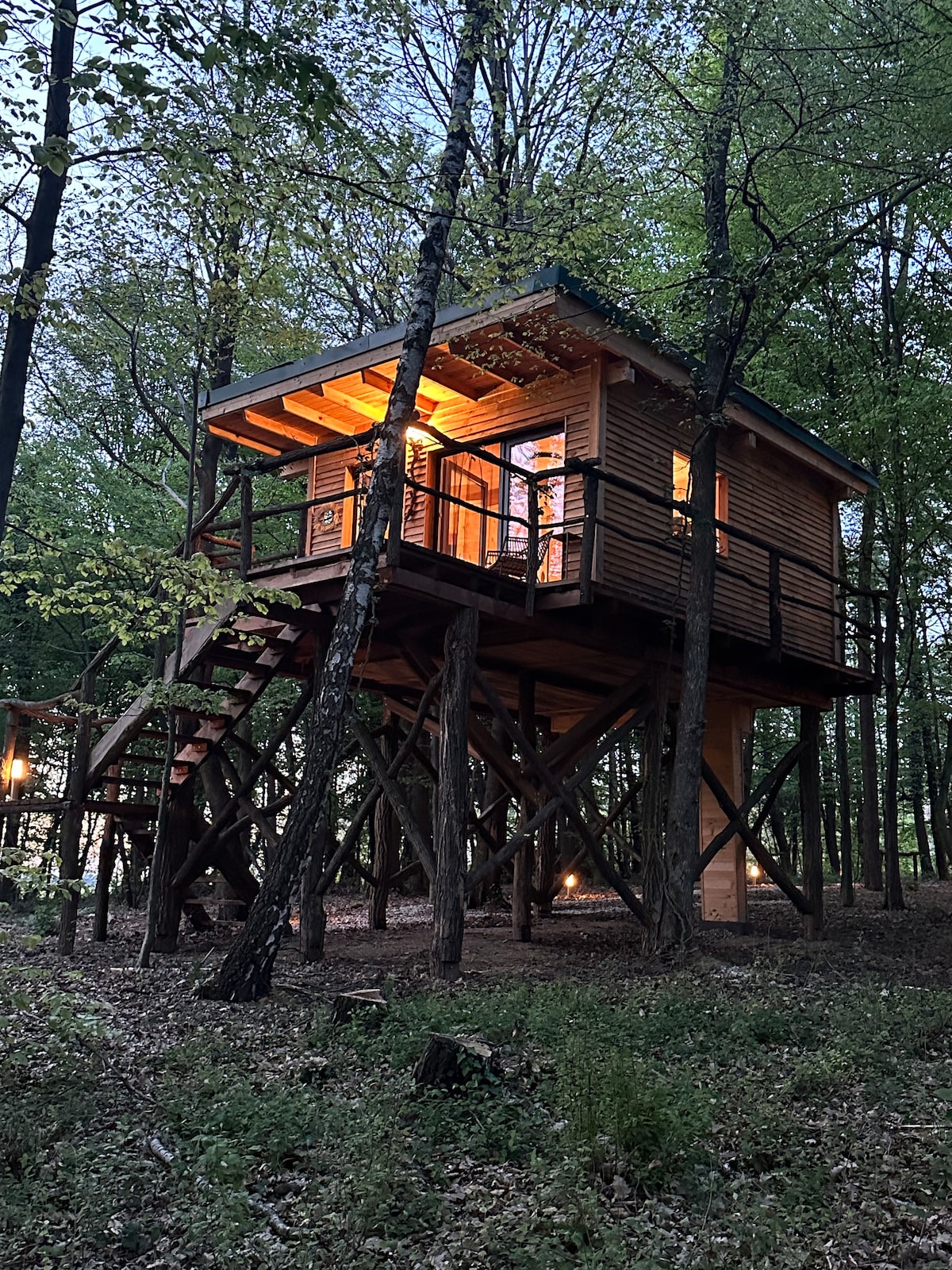Tree Tops - een observatorium voor volwassenen dat zich heeft verwend met het beste. Is een huisje dat je zal boeien. Door zijn unieke ligging in het bos is het ons meest bezochte huisje, waar zelfs de meest veeleisende gast wordt verrukt. Dit houten huis op palen is een observatorium voor volwassenen dat kosten noch moeite heeft gespaard. Het heeft alles wat grote huisjes hebben. Het betreden van het huisje zal je betoveren met de geur van sparren, terwijl je het moeilijk vindt om het uitzicht te weerstaan dat een nieuwe dimensie van het bos opent.