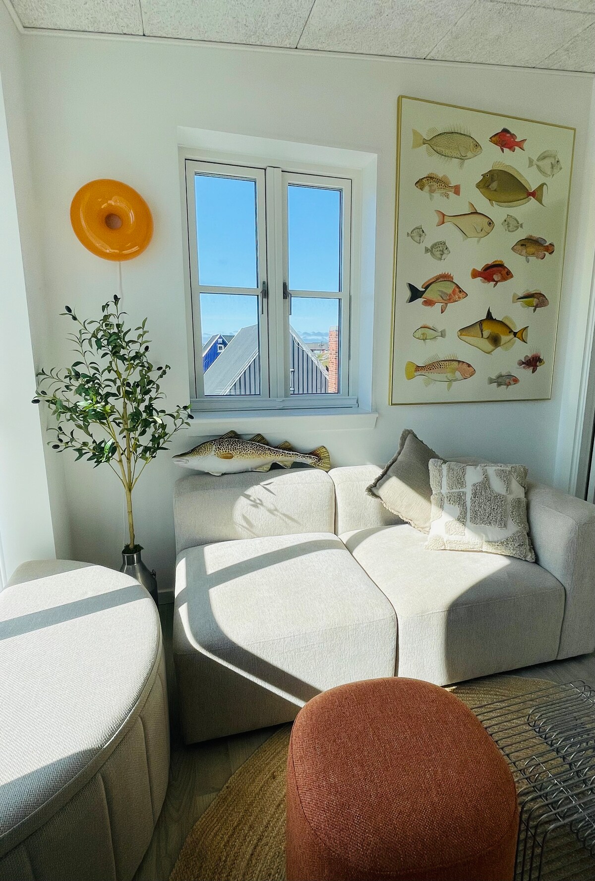 Denne penthouse er perfekt beliggende i et roligt kvarter. Du vil være tæt på supermarkeder, hvoraf det nærmeste kun er 2 minutters gang væk, hvilket gør det nemt at handle dagligvarer. Byens centrum er kun 7 minutters gang væk, hvor du kan nyde lokale butikker, restauranter og attraktioner. Penthouse-lejligheden tilbyder en betagende udsigt over havet, som du kan nyde fra stuen eller balkonen. Tidligt checkin gebyr 300 DKK. Betales via Airbnb