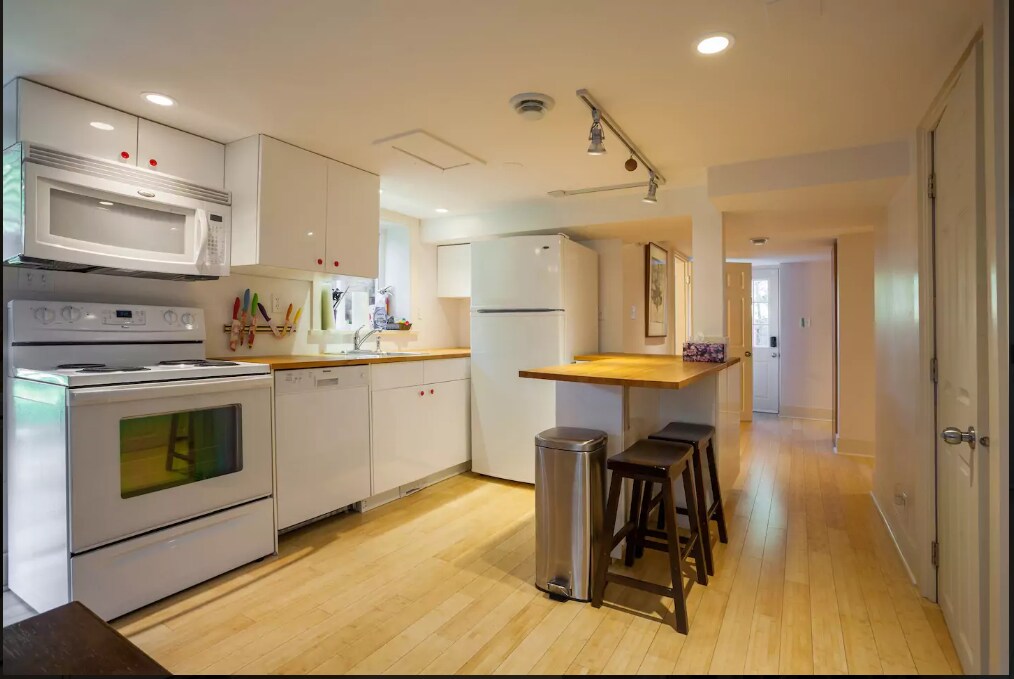 Ontspan en kom tot rust in deze vredige, stijlvolle ruimte. Trakteer jezelf op luxe. Espressomachine, fijn beddengoed, verwarmde badkamervloer, bidet, premium lokale doucheproducten en handig gevulde kitchenette en ontbijtartikelen. **Plafondhoogte is 6’ ** (6’2" in de keuken) Dit is een zelfstandige suite met toegang via toetsenpaneel. Er is een combinatie wasmachine en droger in de suite. We verhuren onze auto ook op Turo! Kom genieten van een mooie rustige sfeer, verscholen in de natuur, handig en dicht bij de actie!