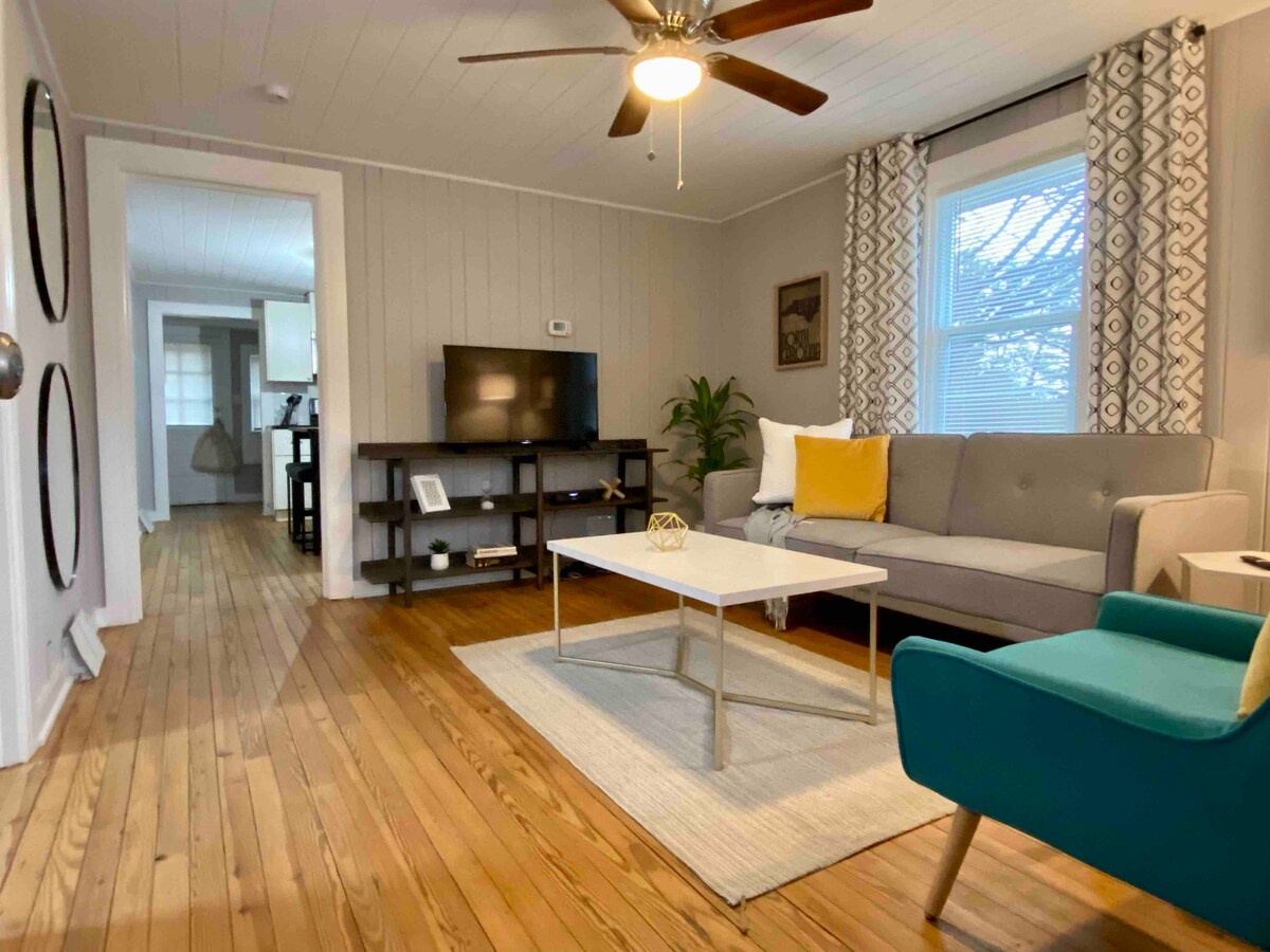 Welkom bij je charmante, huisdiervriendelijke, centraal gelegen schilderachtige huisje! Ons huisje ligt op loopafstand van Ciener Woods Botanical Garden! Downtown, Oak Ridge, GSO Coliseum, Tanger Event Center, Greensboro Aquatic Center... op enkele minuten afstand! Afstudeerders? Wake Forest, UNC-Greensboro en HPU zijn allemaal super dichtbij! Bruiloften? Bella Collina, Summerfield Farms, WillStella & Dewberry Farm zijn dichtbij. Geniet van onze veilige, beloopbare stad. Welkom in je Cottage... de beste keuze voor een comfortabel verblijf!