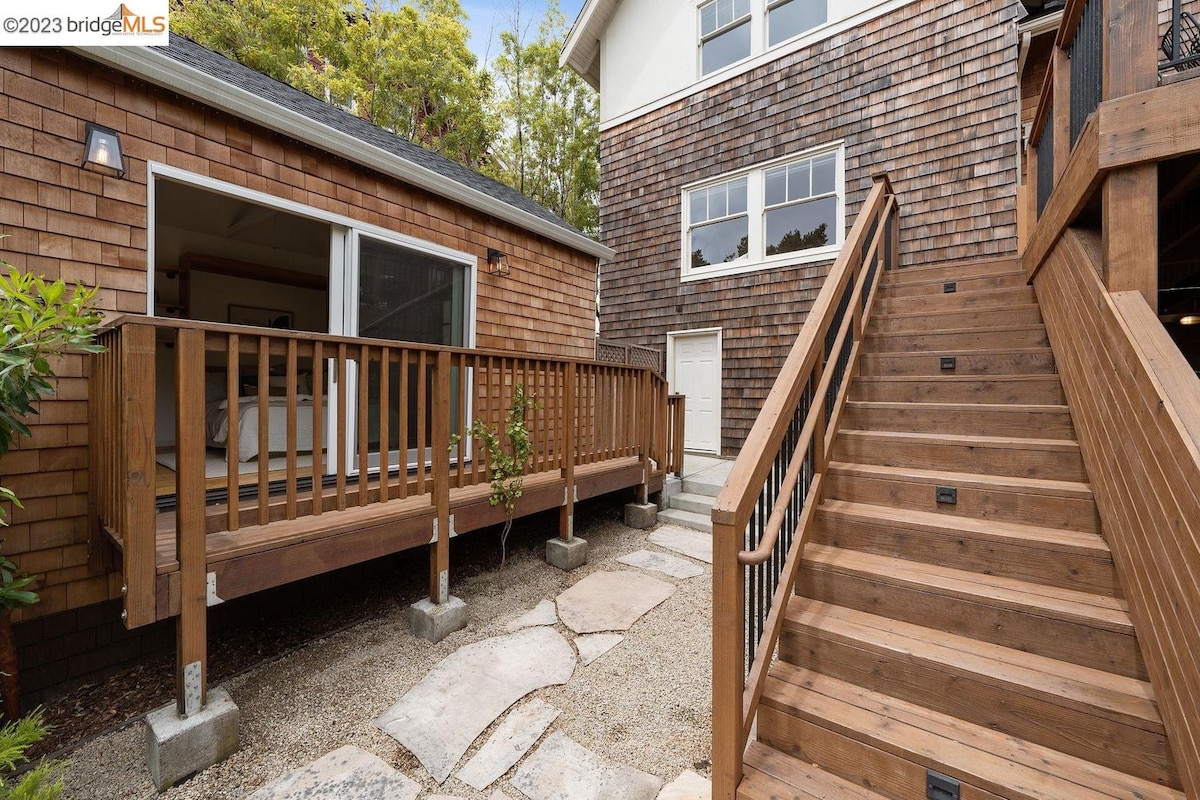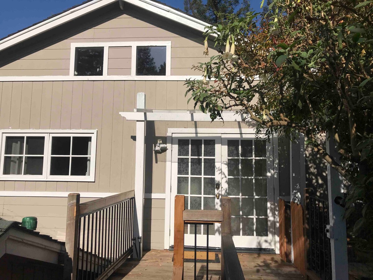 Heb de hele Bay Area binnen handbereik... en direct buiten je raam! Deze privéstudio in de Oakland Foothills is de perfecte uitvalsbasis voor avonturen. Een rit van 9 minuten en je kunt met de trein naar San Francisco. Coliseum en sequoia's liggen op enkele minuten afstand, net als vele andere attracties*. Je wordt thuis verwelkomd in een comfortabel Cal King-bed en een sereen uitzicht op de tuin. Geniet van koffie/thee terwijl je aan tafel gaat zitten, en onze snelle wifi heeft je gedekt. Heb je een elektrische auto? Laad 's nachts op niveau 2 (J1772)!