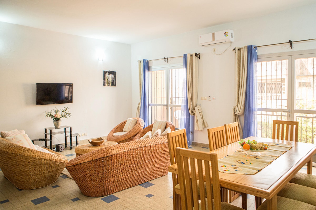 Op zoek naar een chique en veilige accommodatie? Deze charmante villa staat voor je klaar. Op 1 minuut van de hoofdas, op 10 minuten van het stadscentrum, belooft dit charmante huis met een eigen hek, 3 slaapkamers en 1 elegante Italiaanse badkamer, comfort en stijl. Geniet van een supersnelle internetverbinding. (beste snelheid in het hele land) Voor extra comfort is het huis uitgerust met een boiler, boorgat en generator voor totale onafhankelijkheid.