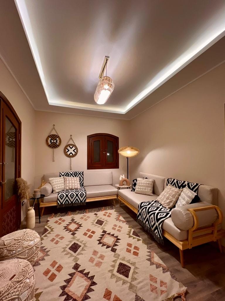 Wij bieden: • Gym, tuin en pingpongtafel • Help bij het regelen van comfortabel vervoer voor een hele dag naar het Grand Egyptian Museum, de piramides of het oude Caïro Verken Caïro overdag en ontspan 's nachts weg van het lawaai in dit gezellige, van airconditioning voorziene gastenverblijf met één slaapkamer. Geniet van een complete keuken, een eigen woonkamer en directe toegang tot de tuin. Ontspan in de hangmat, blijf actief in de fitnessruimte of speel tafeltennis — allemaal in een rustige, veilige buurt op slechts 25 minuten van de luchthaven van Caïro.