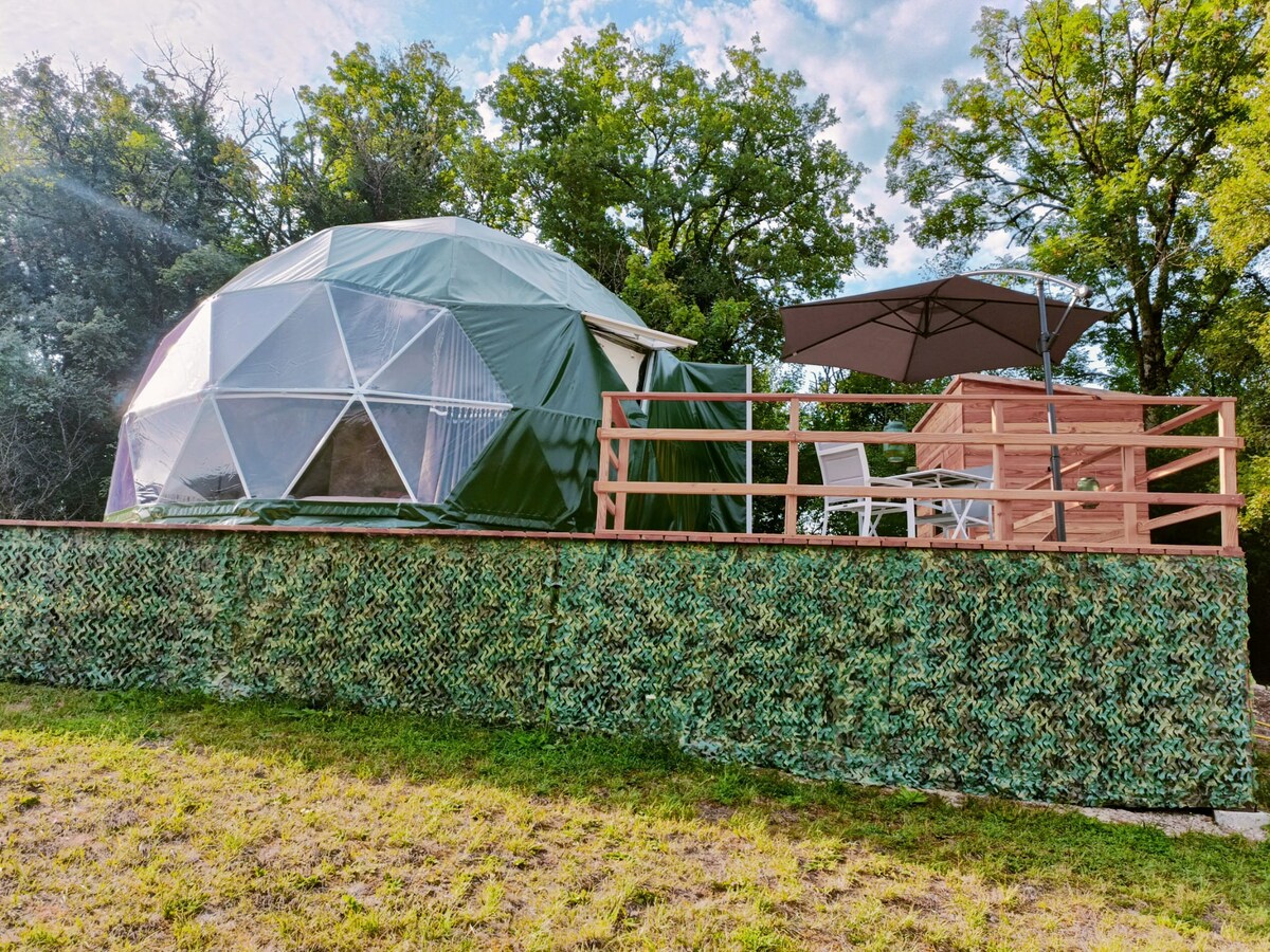 Midden in het platteland van Lotois op een paar minuten afstand van de afgrond van Padirac en de stad Rocamadour . Wij bieden onze koepel zodat je zo dicht mogelijk bij de natuur kunt zijn met alle gemakken van een suite. Ideaal voor een romantische nacht, ons houtgestookte Scandinavische bad zorgt ervoor dat je kunt genieten van de rust van de omliggende natuur