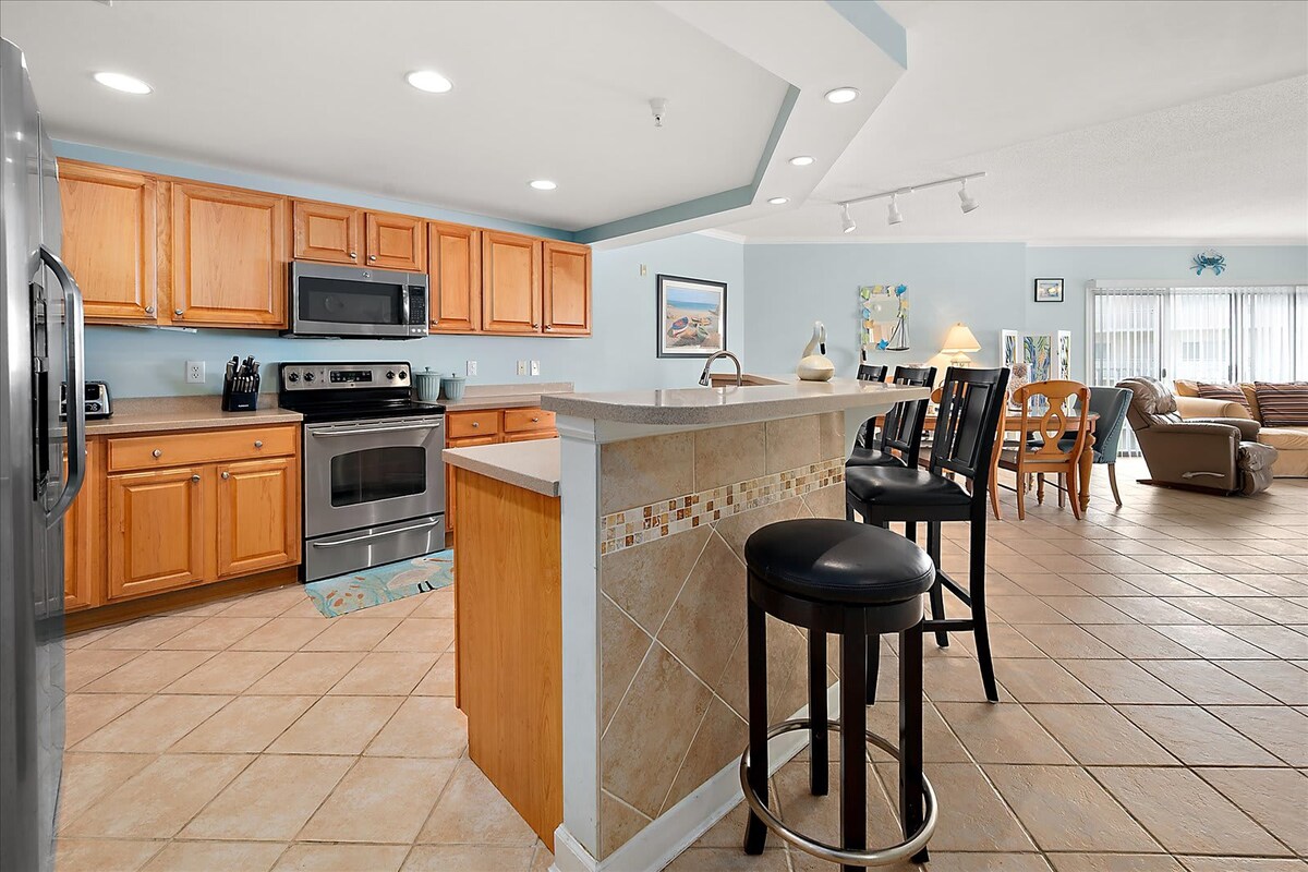 ★★ Wat je moet weten ★★ ✹ Moet 25+ zijn om te huren en te verblijven - geen afgestudeerde HS-groepen. ✹ Parkeren: 2 plaatsen inbegrepen (extra parkeergelegenheid op straat op basis van wie het eerst komt, het eerst maalt) ✹ 4 Smart-tv's voor streaming (geen kabel-tv) ✹ Alle beddengoed & badhanddoeken inbegrepen! ★★ Dingen om van te houden ★★ ✹ Directe locatie aan de oceaan met prachtig uitzicht op het strand ✹ Snelle wandeling naar het strand ✹ Ruime indeling plus een gemeubileerd balkon voor koffie in de ochtend en avondbriesjes