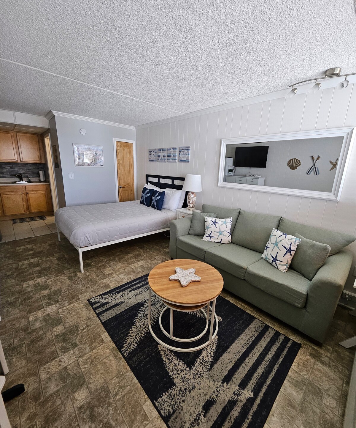 Volledig gerenoveerd appartement met nieuw high-end meubilair. 1 blok van strand! Dit appartement aan de kust is perfect gelegen aan de overkant van Icona & Windrift, SH outdoor rec center en op enkele minuten van winkels en eetgelegenheden. Suite biedt slaapgelegenheid voor 6 personen; queensize en twee eenpersoonsbedden in de slaapkamer en een queensize uittrekbare woonkamer (beddengoed aanwezig) volledig gevulde keuken en 1 complete badkamer (beddengoed aanwezig). Hotelvoorzieningen zijn onder andere: binnen-/buitenzwembaden, buitenlounge/zithoeken, WIFI, parkeren.