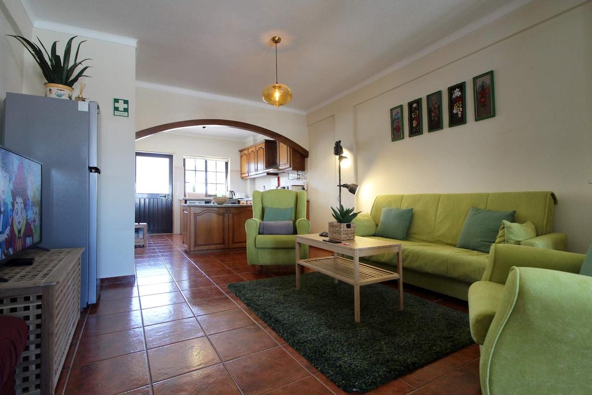 T2 appartement op de eerste verdieping en met twee slaapkamers waarin één van deze een tweepersoonsbed heeft en de andere heeft twee enkele bedden. De badkamer wordt gedeeld met douche douche douche waar de handdoeken aanwezig zijn. De keuken is volledig uitgerust en geeft buiten toegang tot een balkon. Bestaande uit een volledige keuken en woonkamer met een slaapbank, tv en wifi. Gelegen in het dorp Cavaleiro - Cabo Sardão en ingevoegd op de Vicentina route.