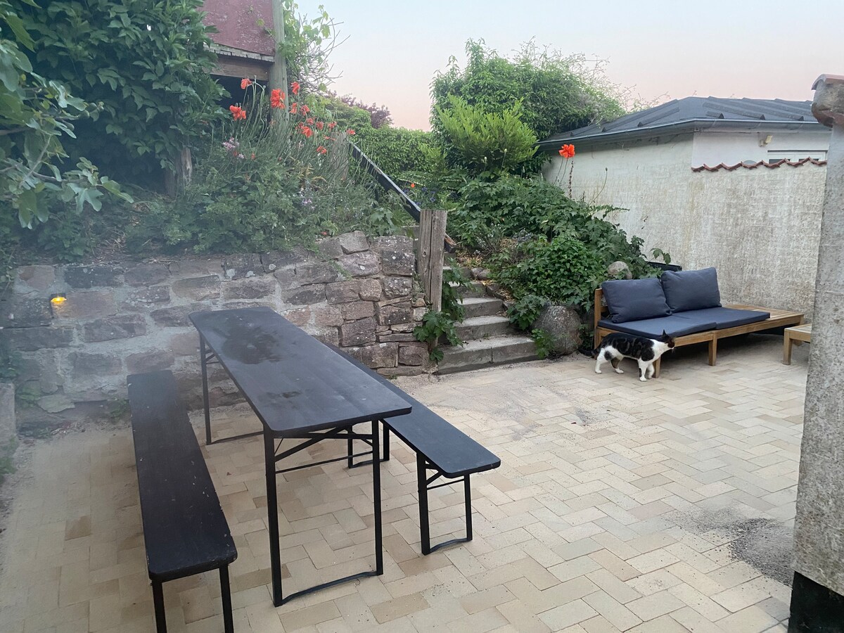 Minimaal 2 nachten - minimaal 2 nachten. Super locatie op korte afstand van het stadscentrum, met eetgelegenheden, cafés en musea. Parkeren voor de deur, evenals supermarkt, bakker en tankstation. Er is een eigen terras met tuinmeubelen - zowel overdekt als voor zon, barbecue en vuurplaats. Alles is onlangs gerenoveerd. Let op: Linnengoedpakketten DKK 50,/per persoon (bestaande uit beddengoed, 4 handdoeken, badmat, theedoeken etc.) verplicht. De woning is niet geschikt voor kinderen of mensen met een loopbeperking.