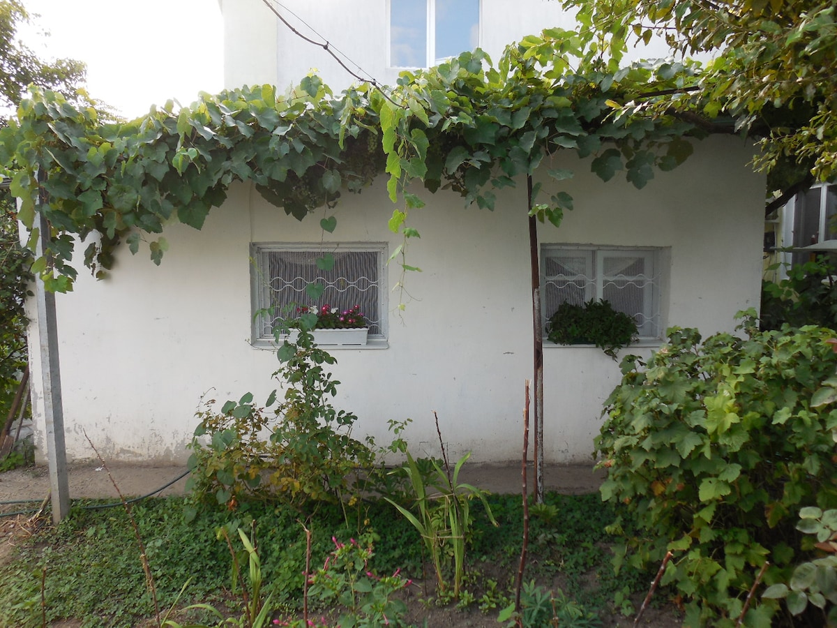 Dit is een pension in de omgeving van het 10e station van de Grote Fontein. Zeer rustige plek voor een goede rust. 12-15 min. lopen naar het strand "Chaika". Het huis is gelegen op een groot perceel met een fruittuin. De tuin heeft een barbecue en een lounge. Het huis heeft een tweepersoonsbed, keuken, doucheruimte en toilet. Het is een pension in de buurt van de 10e station B. Fontana. 12-15 minuten naar de zee lopen stap.