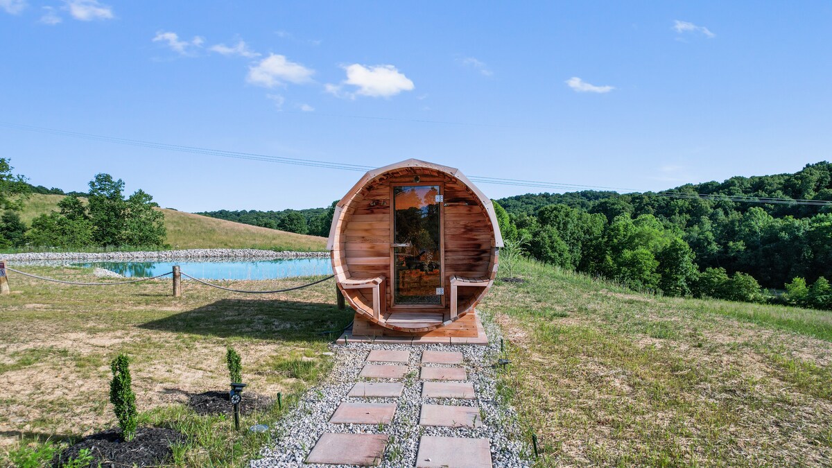 Stel je voor... je eigen hobbit inspireerde magische sprookjesachtige uitje met een panoramisch uitzicht. Huisdiervriendelijk op vijf kilometer van Hocking Hills State Park Ash Cave. Zit op 11 hectare. Saunapod ter plaatse vraag naar je gratis saunasessie. Luxe queensize bed, unieke afwerkingen, schuurdeur, elektrische open haard en vintage volledig uitgeruste kitchenette. Koffiezetapparaat. Je eigen bubbelbad. Buiten BBQ en open haard. Alle luxe en grillige charme. Charmante wijnmakerij in de buurt. Korte rit naar Cedar Falls, Old Man 's Cave.