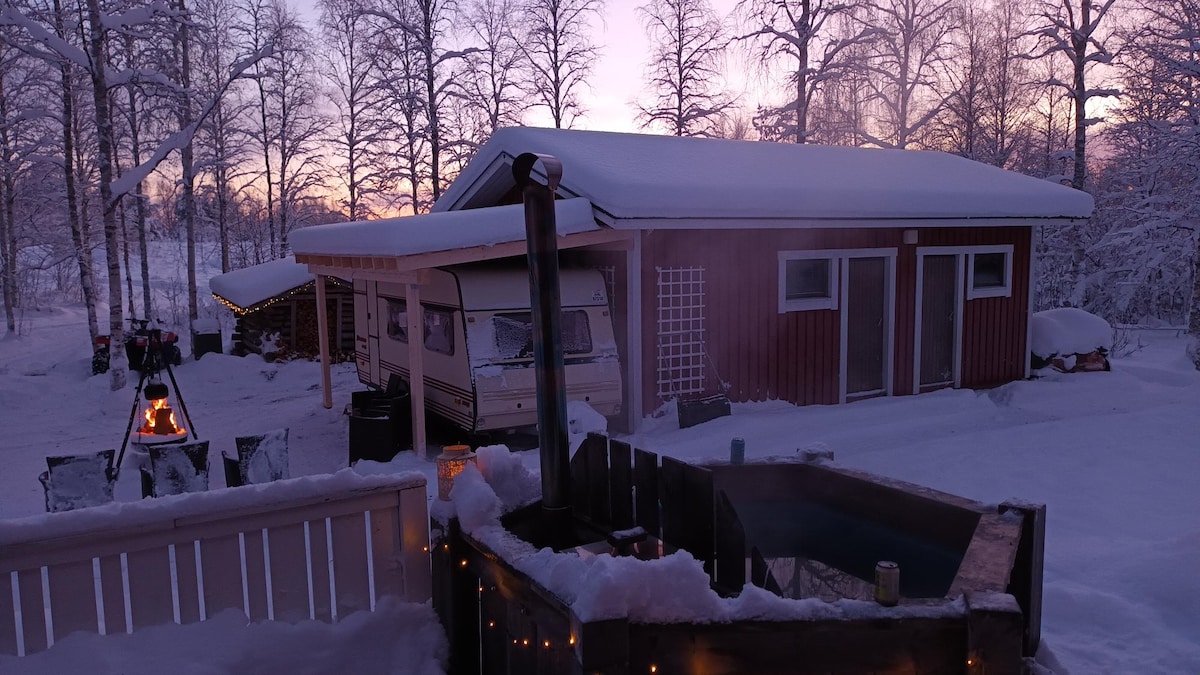 Welkom in ons gloednieuwe huisje! De hut ligt aan de rand van onze tuin en biedt rust en privacy, hoewel het centrum van Rovaniemi nog steeds op slechts 10 minuten rijden ligt (7 km) en Santa Claus Village, luchthaven en treinstation op ongeveer 15 minuten rijden (10 km). Gratis parkeren vlak bij de hut. Langlaufloipes liggen op ongeveer 500 m en skipistes en een golfbaan liggen op ongeveer 4 km afstand. We kunnen maximaal 3 personen ontvangen: 2 in een tweepersoonsbed/eenpersoonsbedden + 1 op een matras of babybed.