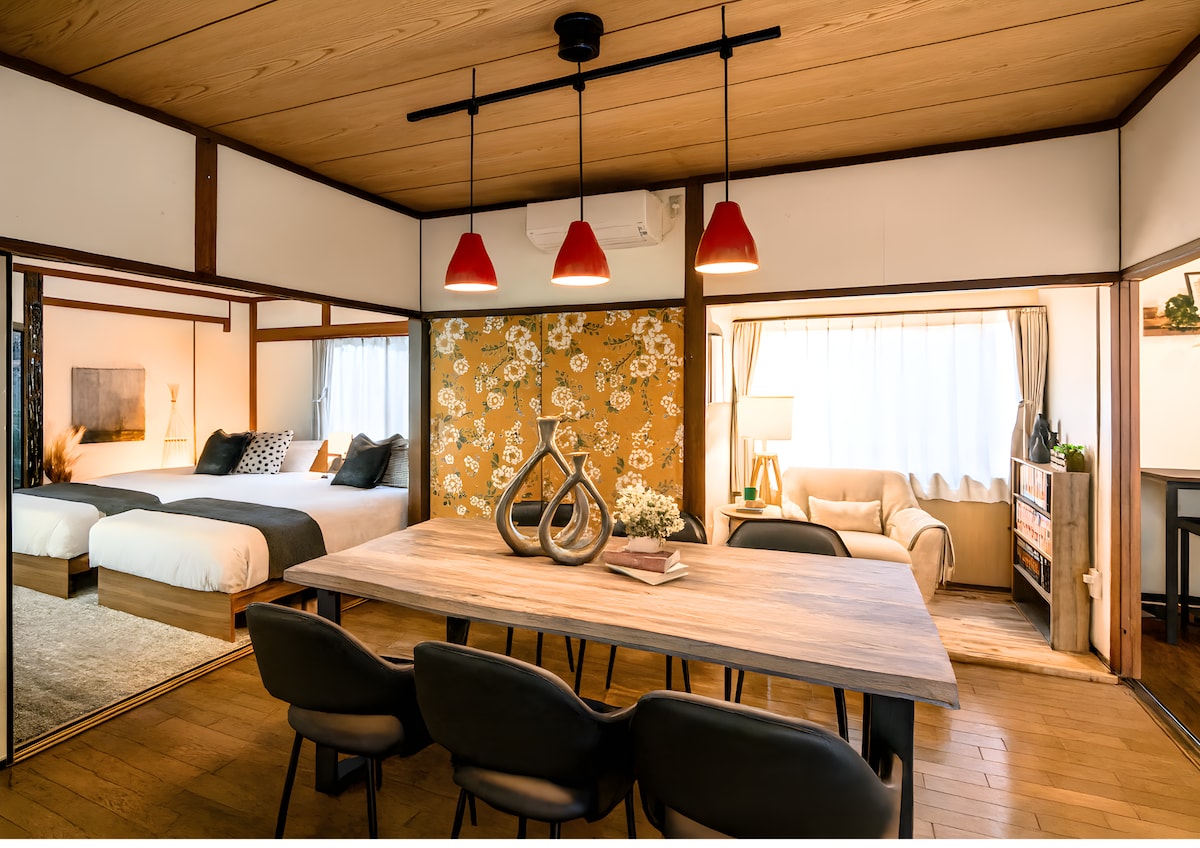 Een 100 jaar oud huis, omringd door rijke natuur en bewaakt door de grote kamferboom van Honjo, Geniet van de schoonheid en stilte van Japan.